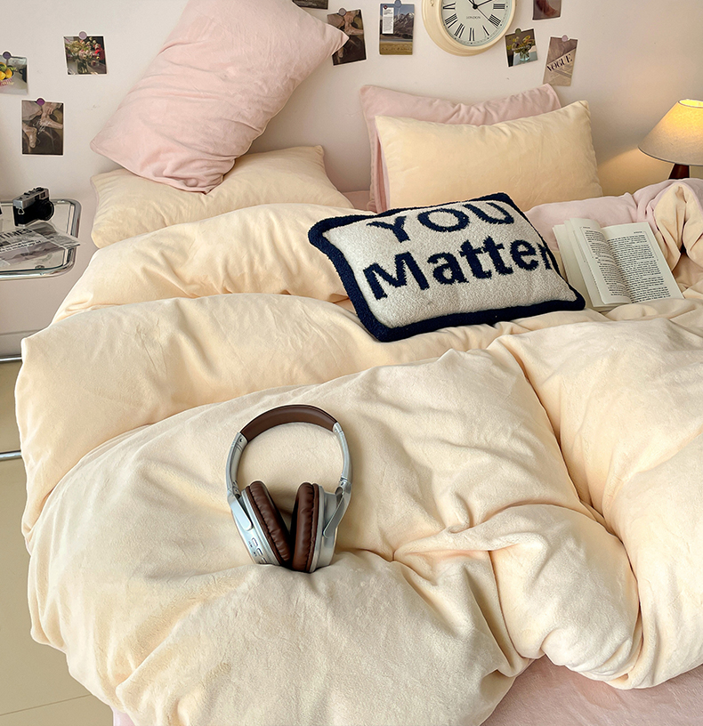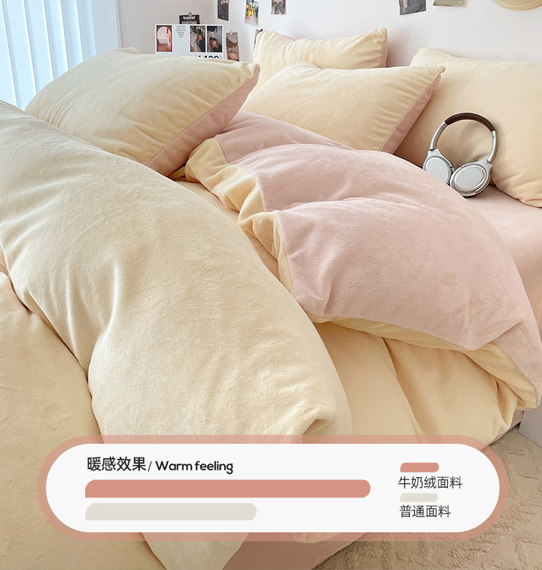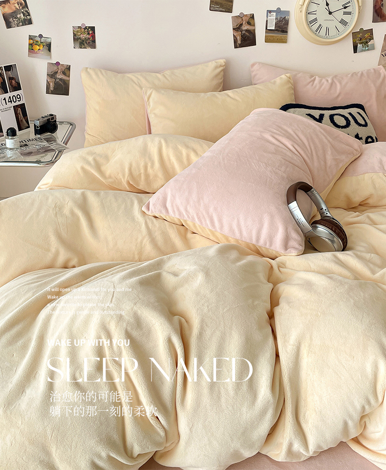 当前位置: 91家纺网 > 商品网购 > 床品套件 > 四件套 > 牛奶绒四件套 > 顺兴家居 2025新款简约纯色双拼牛奶绒四件套(风格一) 奶昔黄+粉玉