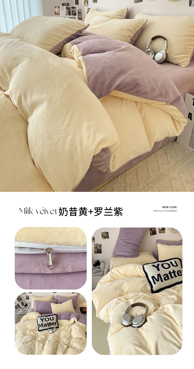 当前位置: 91家纺网 > 商品网购 > 床品套件 > 四件套 > 牛奶绒四件套 > 顺兴家居 2025新款简约纯色双拼牛奶绒四件套(风格一) 米杏+奶咖