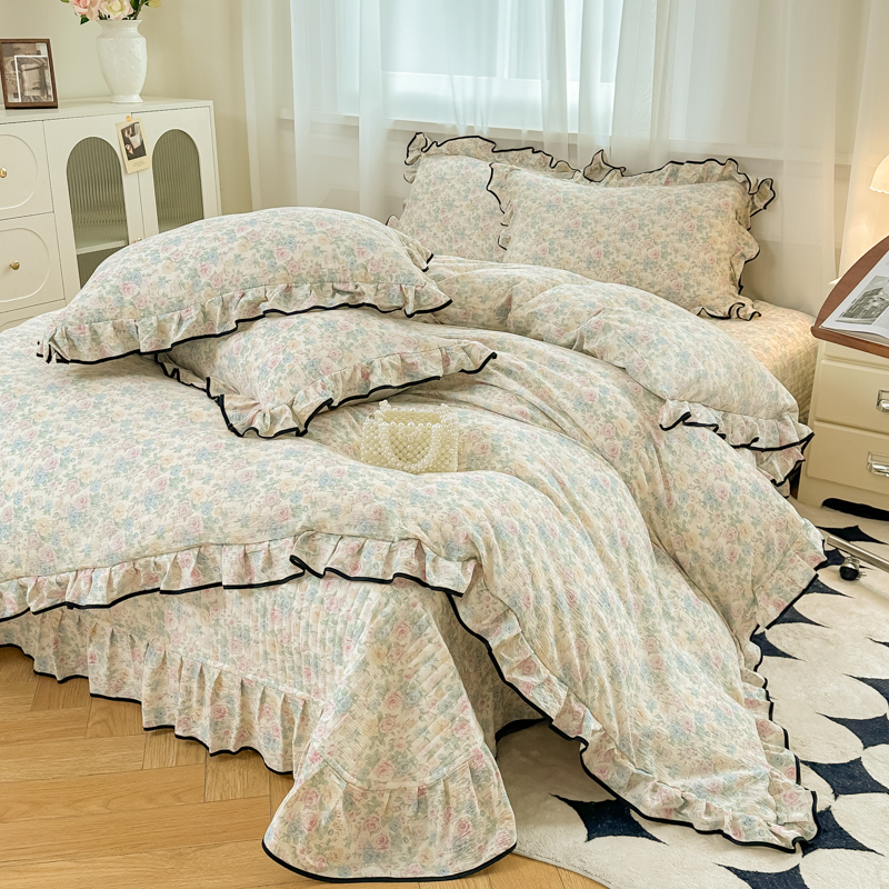 尚美 2025新款法式小黑边云感四件套床盖款 大格卡