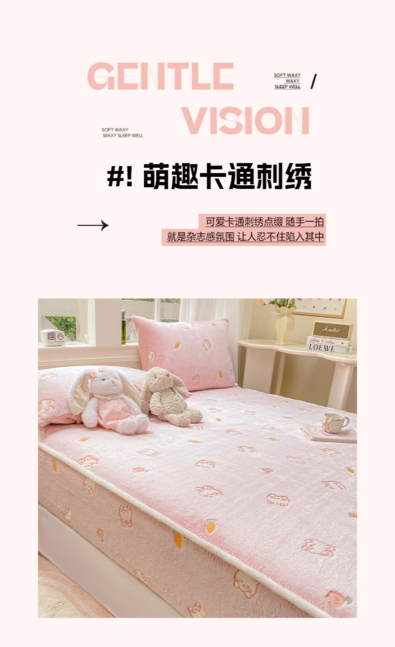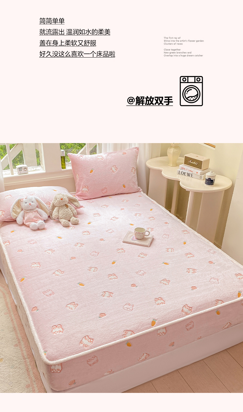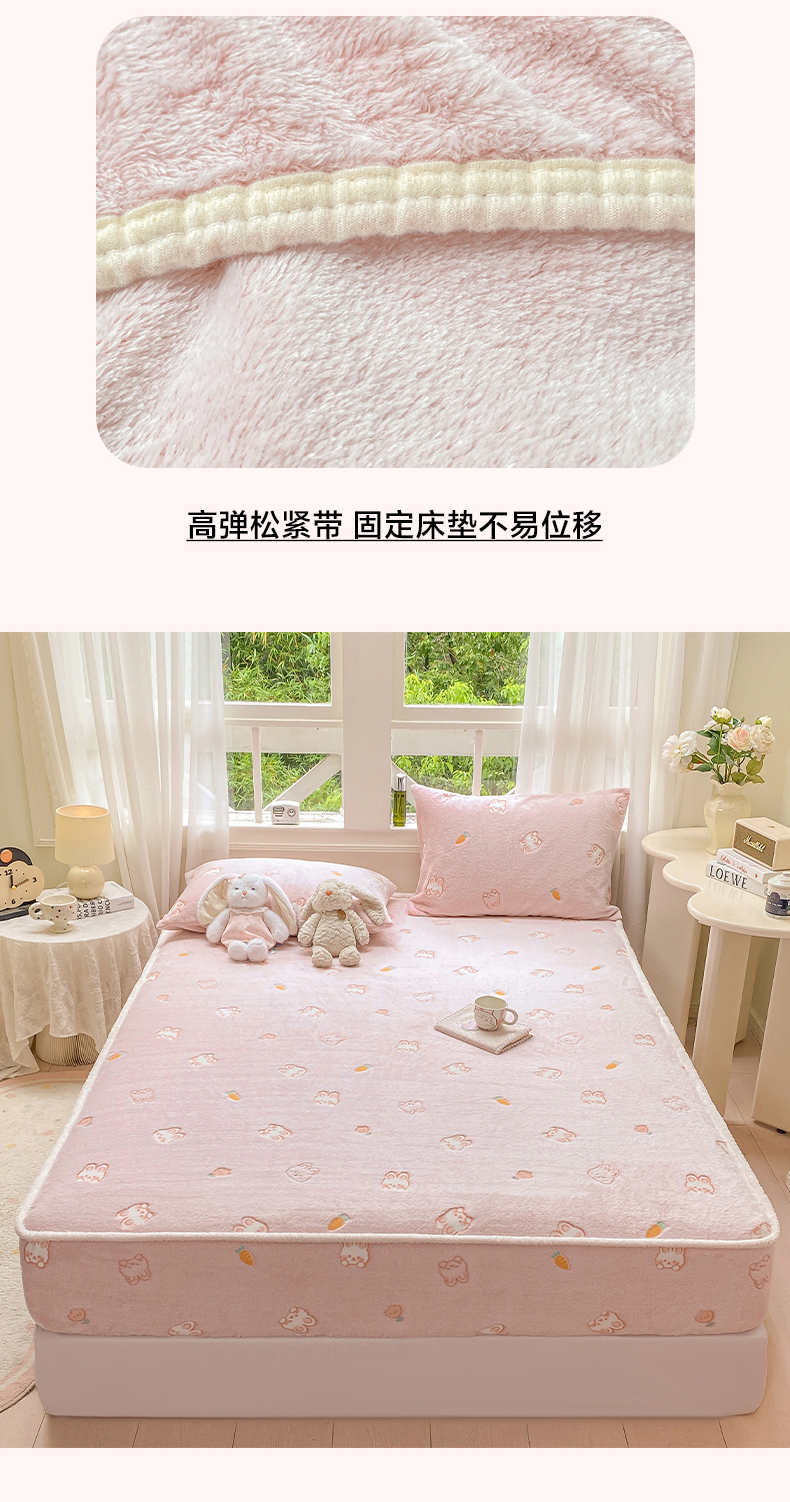 • 91家纺网 家纺一手货源 找家纺 眠势力 2025新款250g双面绒床笠单件三件套刺绣款高克重牛奶绒床垫保护套 小白兔【双面绒刺绣款】