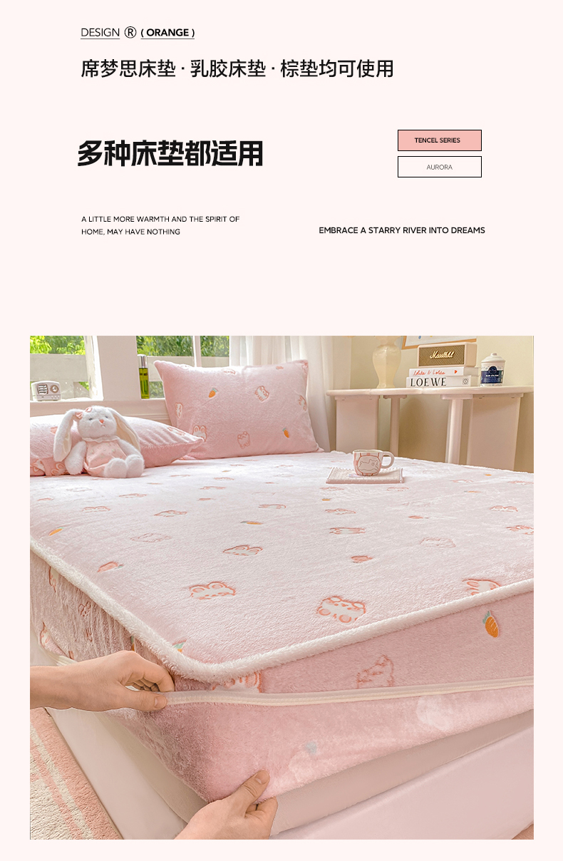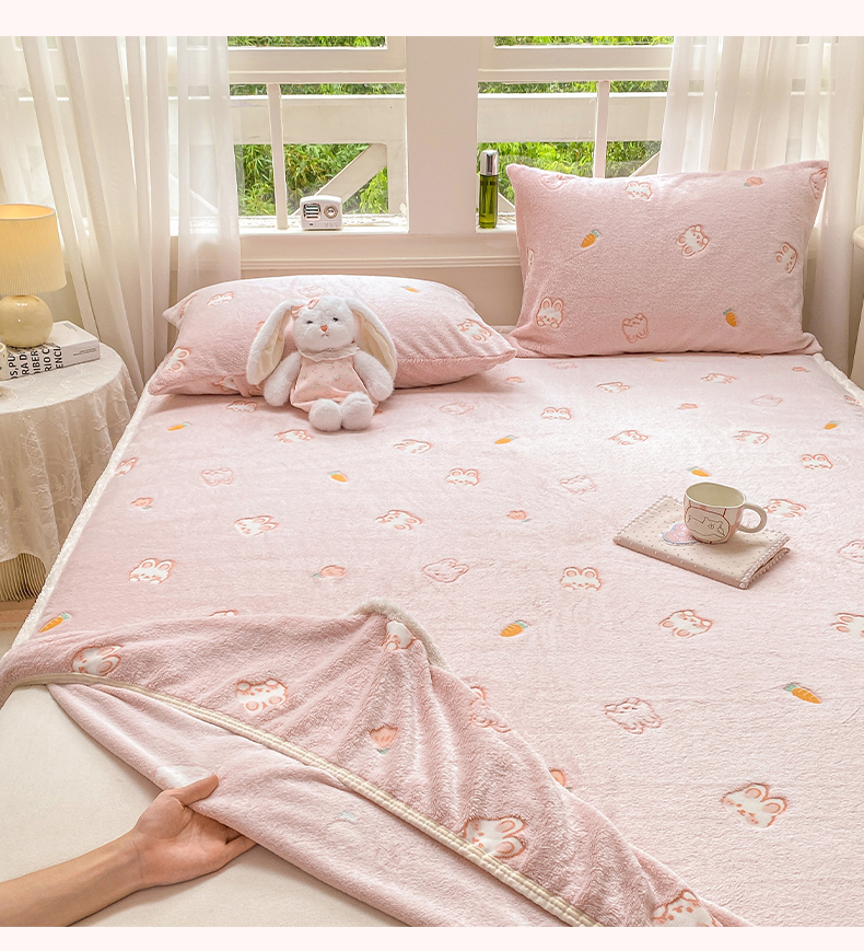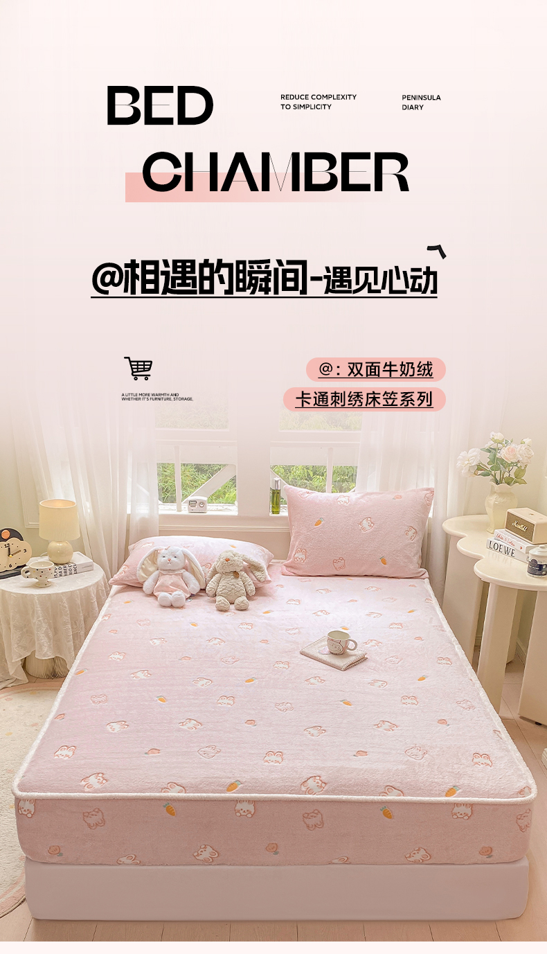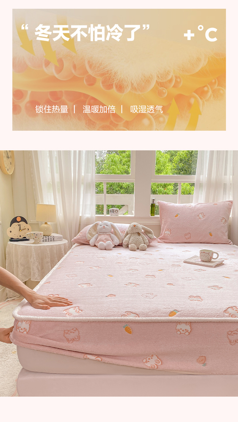 • 91家纺网 家纺一手货源 找家纺 眠势力 2025新款250g双面绒床笠单件三件套刺绣款高克重牛奶绒床垫保护套 小白兔【双面绒刺绣款】