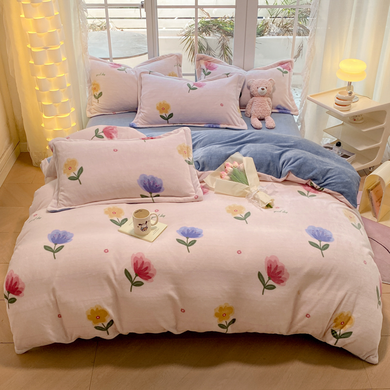 喜梦缘家纺 2025新款小版牛奶绒印花四件套系列 猫狗日记