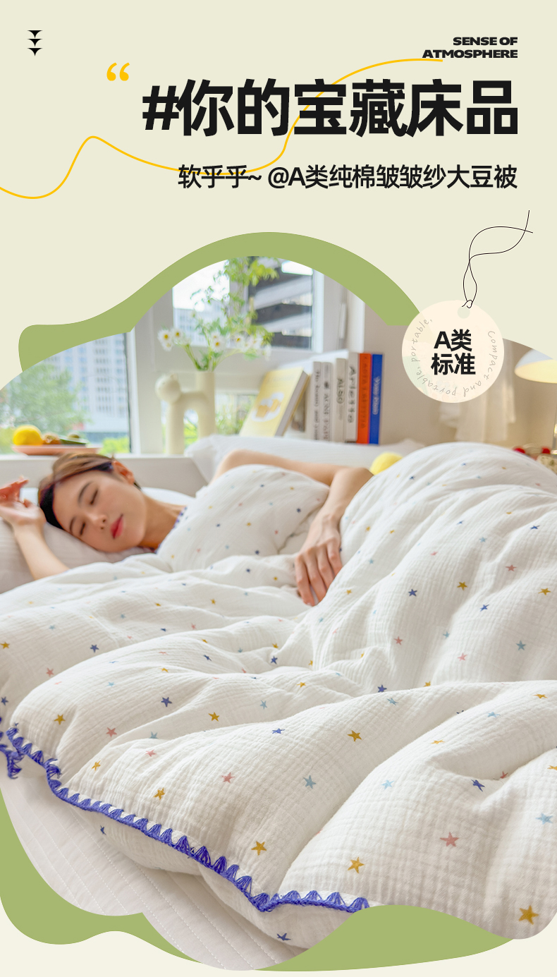当前位置: 91家纺网 > 商品网购 > 被子 > 冬被 > 观月轩家纺 2025新款全棉纯棉大豆冬被春秋被被子被芯(10%大豆纤维包检测) 冬被-小星星