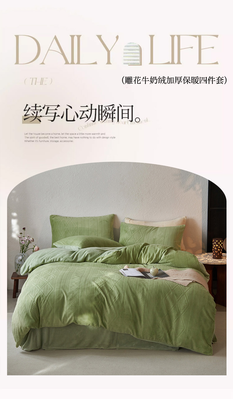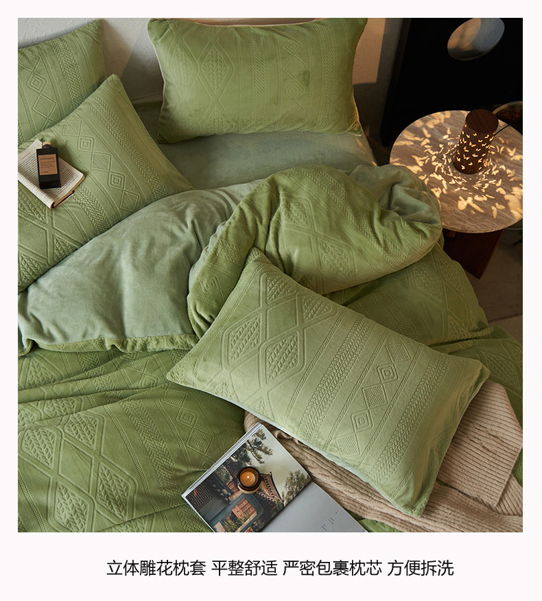 当前位置: 91家纺网 > 商品网购 > 床品套件 > 四件套 > 牛奶绒四件套 > 眠博士 2025新款雕花加厚牛奶绒系列四件套 雕花款-卡洛绿