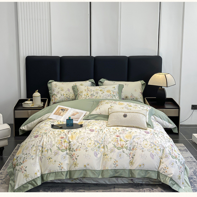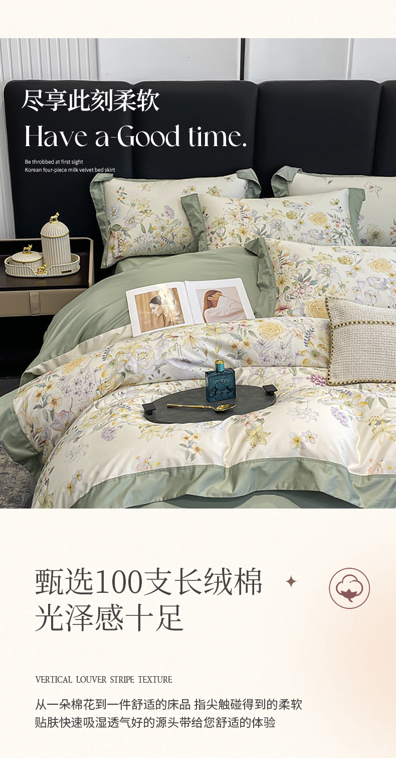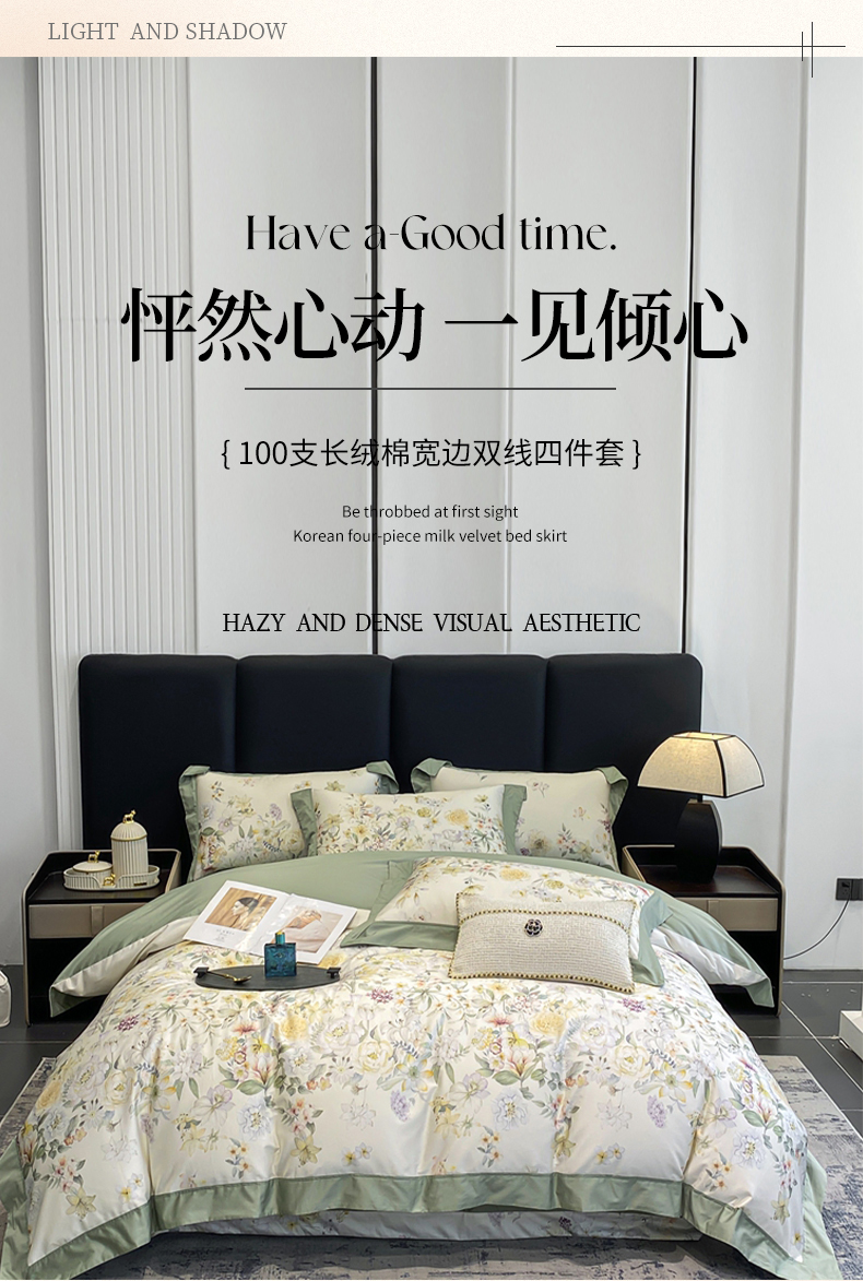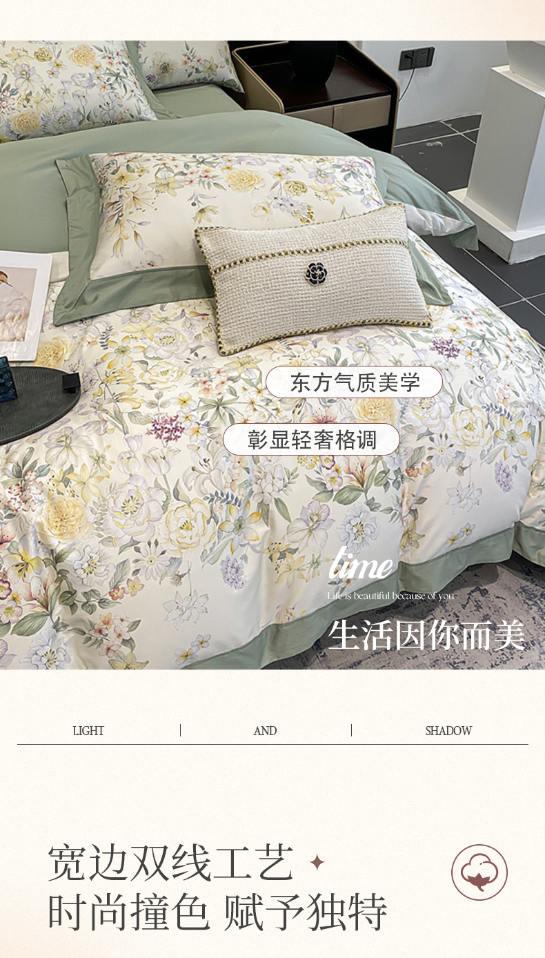 (总)娇逸家居 2025新款高克重A类数码印花牛奶绒双拼边款四件套,采薇灰,扶桑,浅影,秋灵粉,秋灵黄,秋灵绿,舜华粉,采薇米,舜华绿,仙客,栩蝶,璎珞,玉树,芸芙