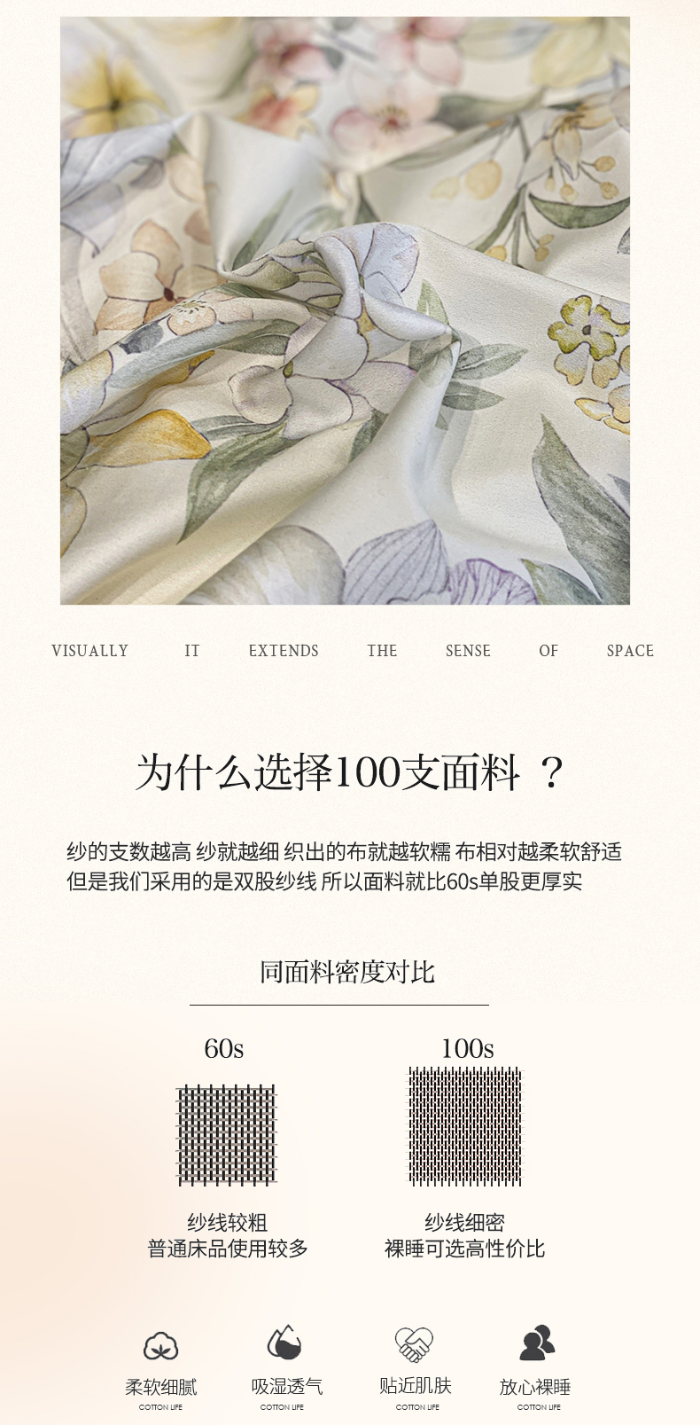 商品名称:娇逸家居 2025新款100支新疆长绒棉纯棉数码印花全棉四件套(专版花型) 沐熙-米