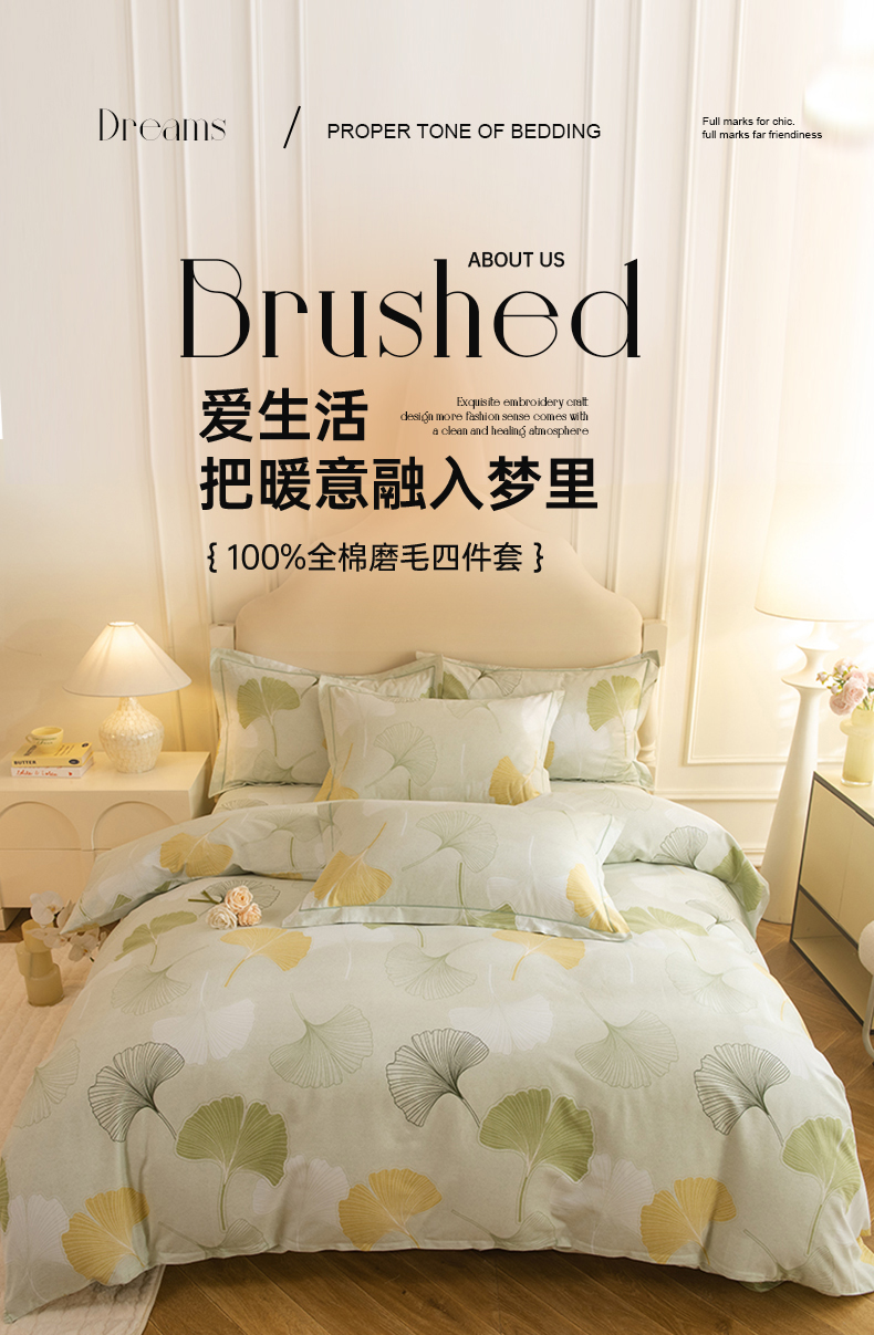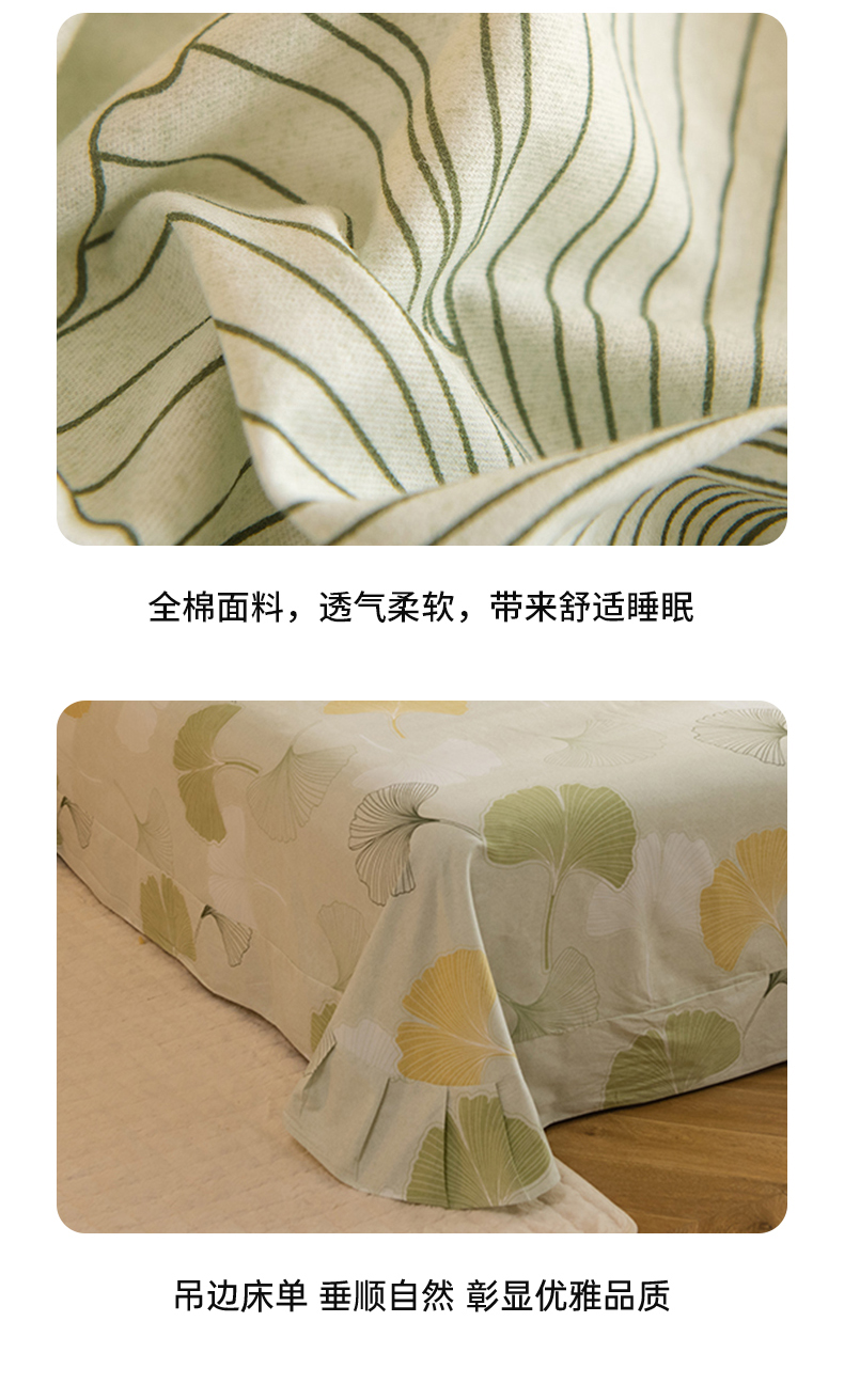 商品名称:磨毛世家家纺 2025新款生态四件套 银杏叶-绿