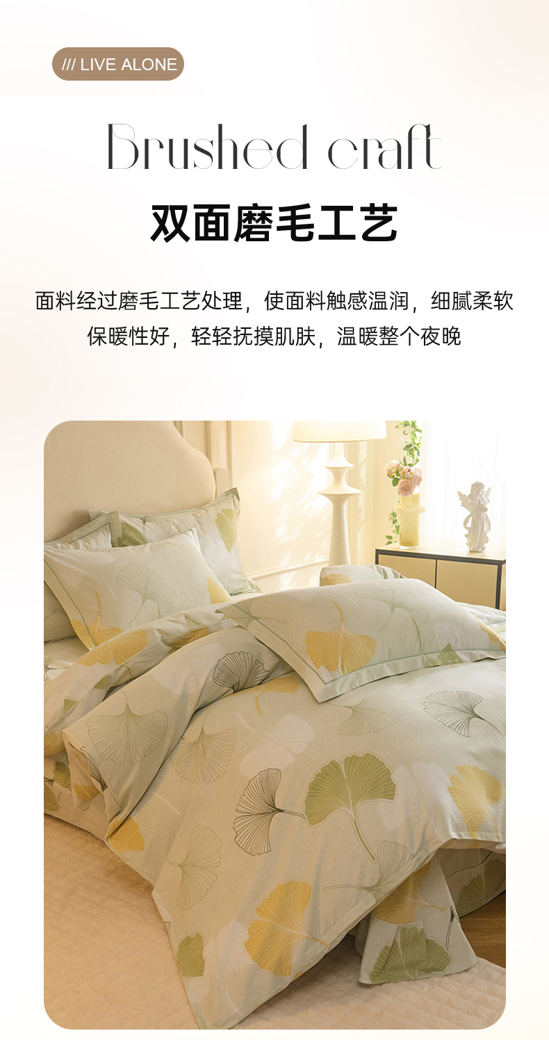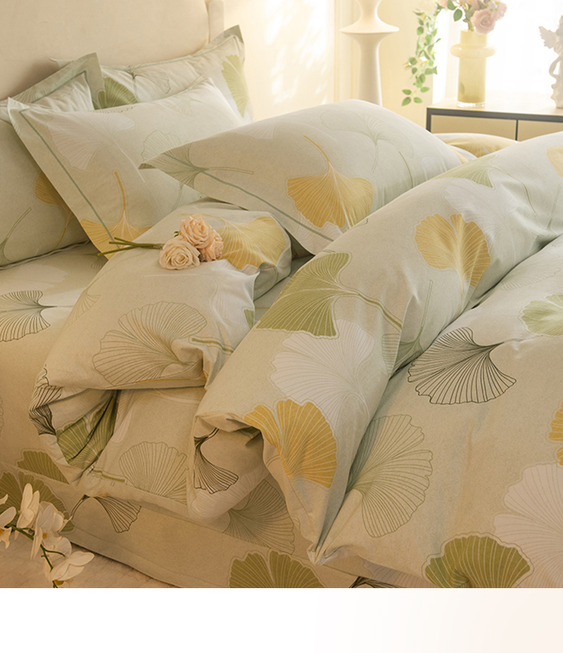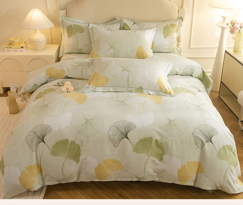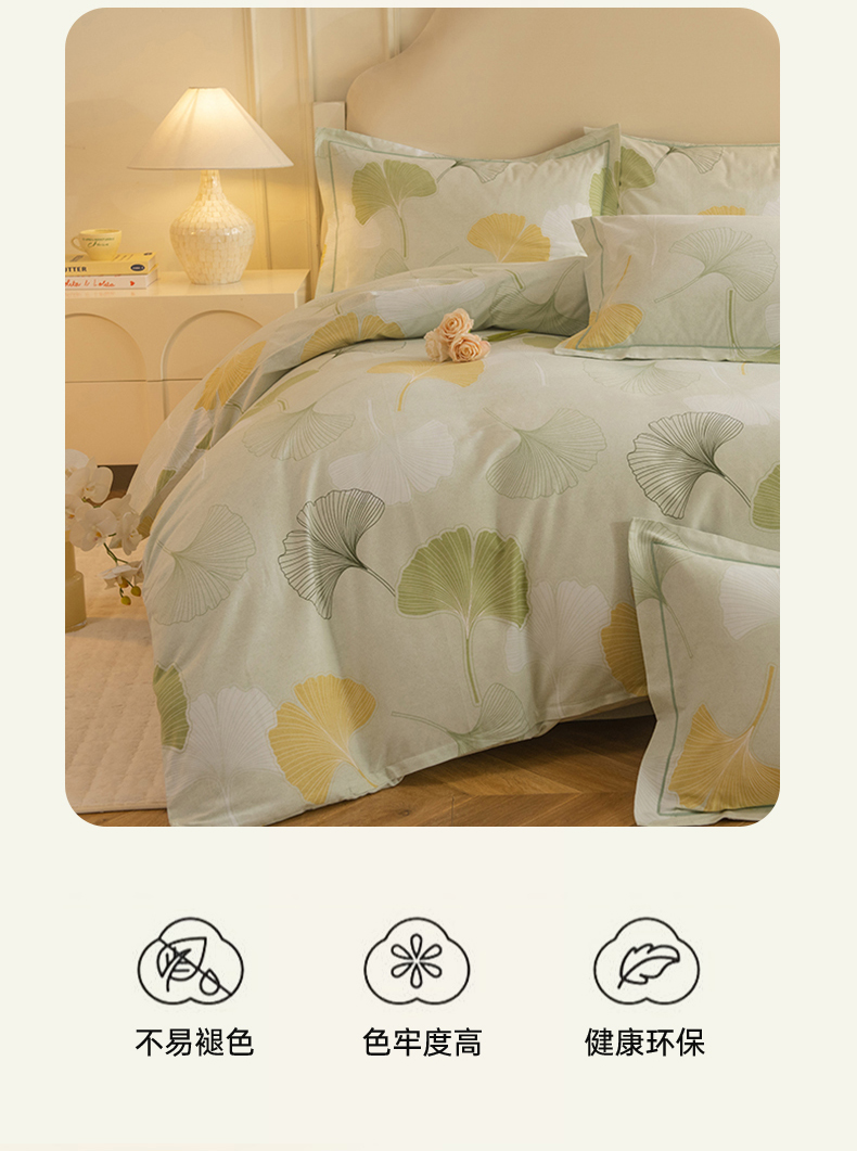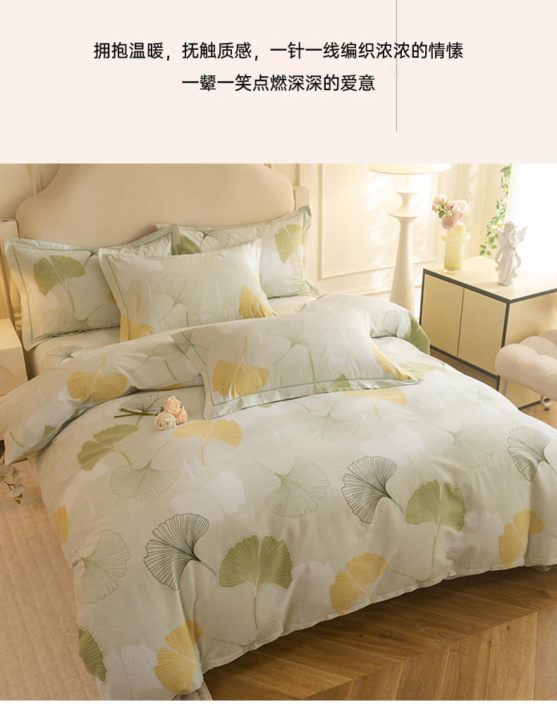 磨毛世家家纺 2025新款生态四件套 银杏叶-绿