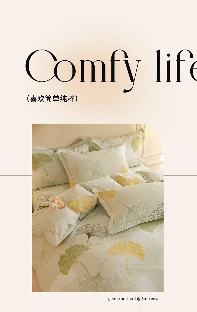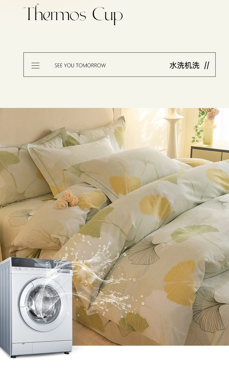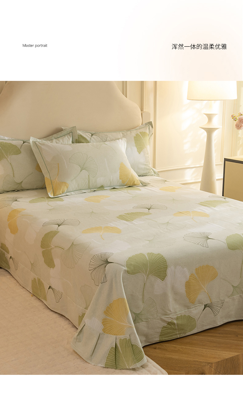 磨毛世家家纺 2025新款生态四件套 银杏叶-绿