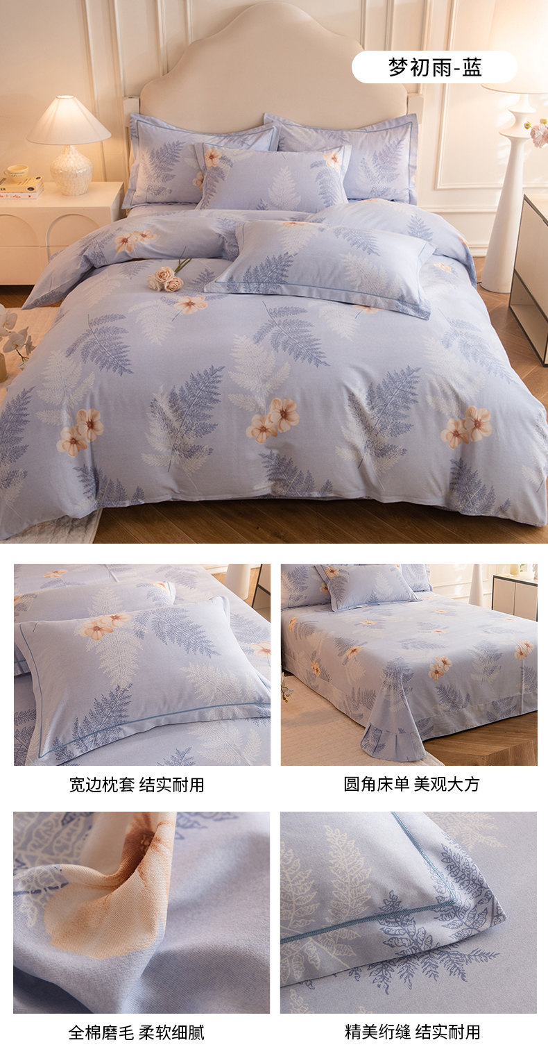 (总)磨毛世家家纺 2025新款全棉四件套纯棉加厚生态磨毛套件,北美风情-灰,布列塔-粉红,布列塔-幻影灰,布列塔-浅咖,布列塔-浅紫,布列塔-天空蓝,春和景明-粉,春和景明-蓝,粉色,花之盛宴,花枝漫漫-灰,灰色,拉布布-米,洛丽塔-绿,玫瑰物语-灰,梦初雨-蓝,南瓜甜心-灰,苹果绿,浅咖色,浅笑嫣然-灰,浅紫,天空蓝,向云端-粉,小乔人家-黄,亚马逊-灰,瑶花知-蓝,叶韵-蓝,银杏叶-绿,云雨轩-粉,珍妮花园-蓝