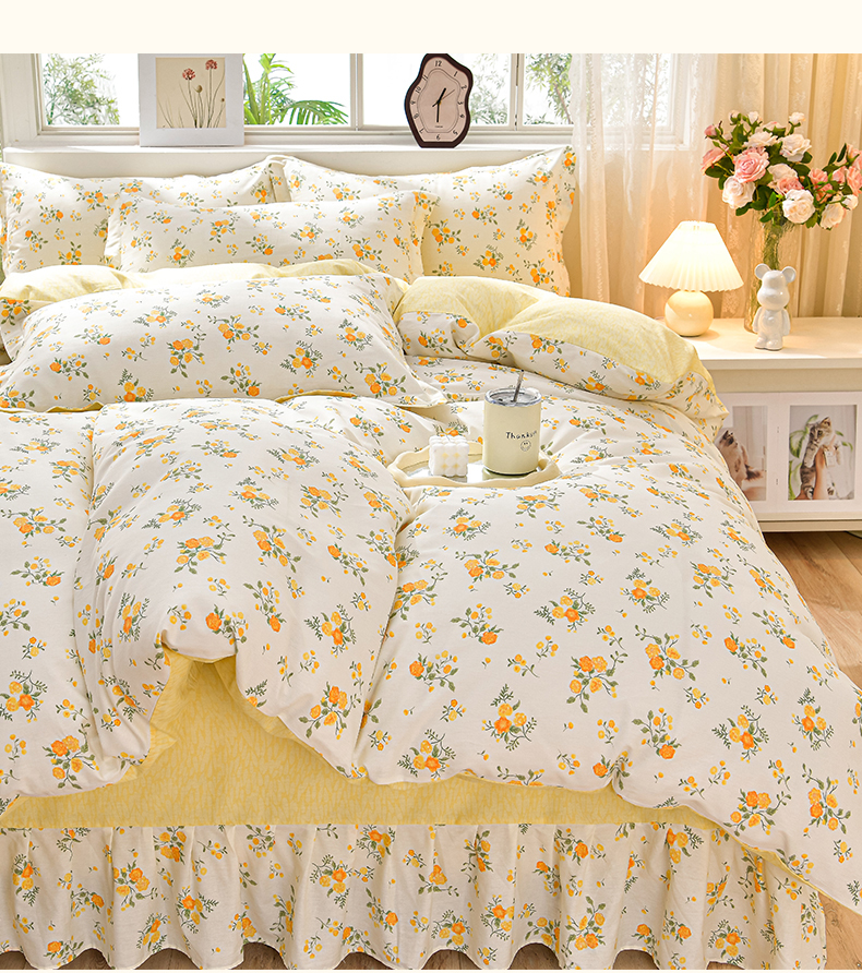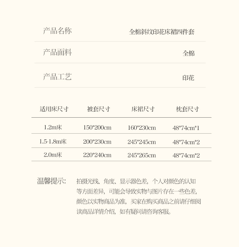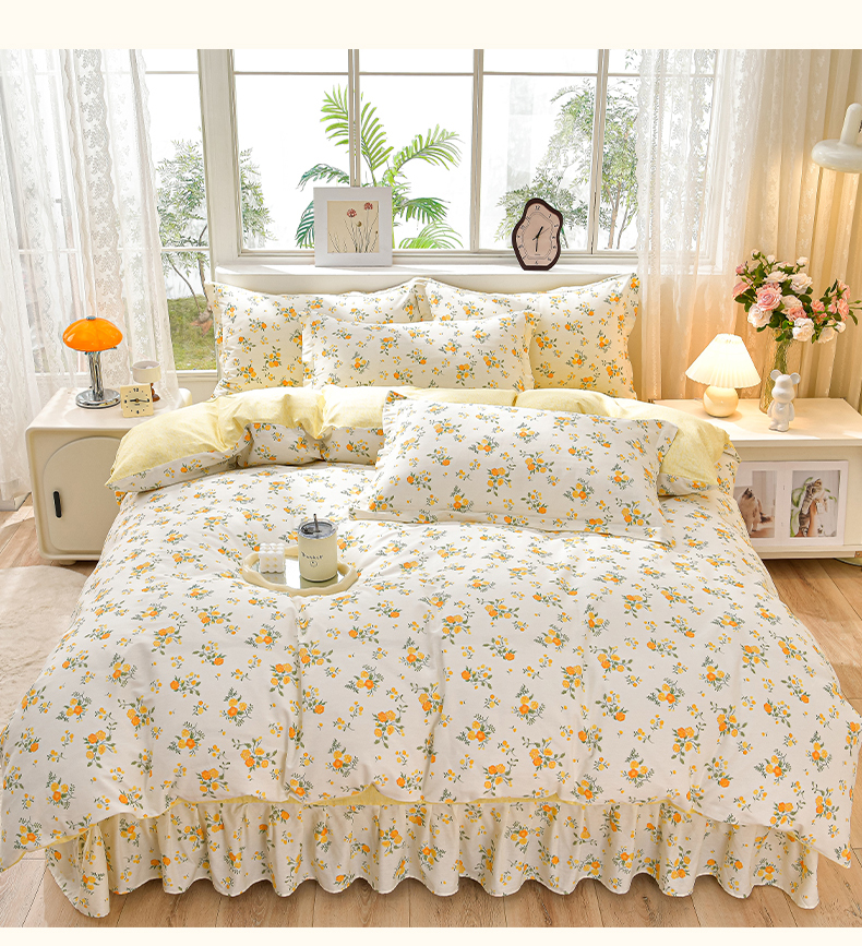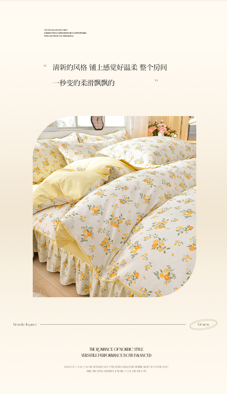 商品名称:绘萱家居 2025新款100%全棉床裙款斜纹印花四件套 初春