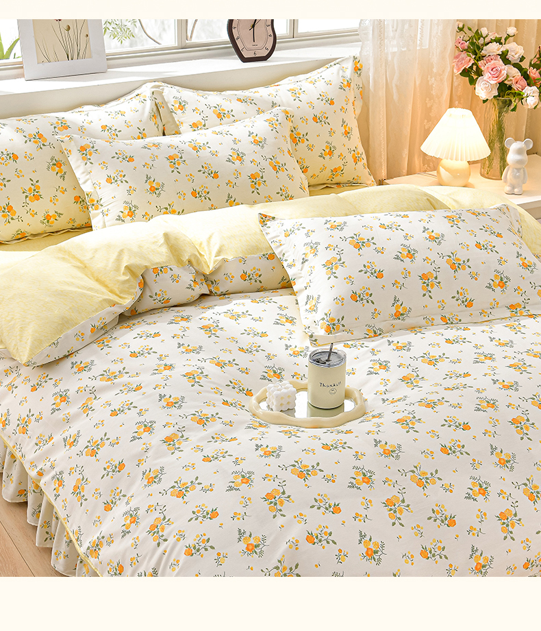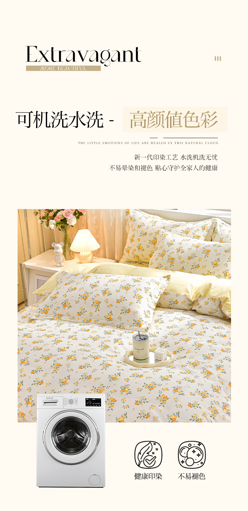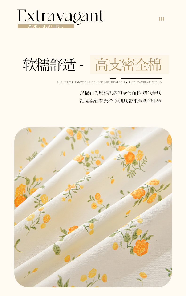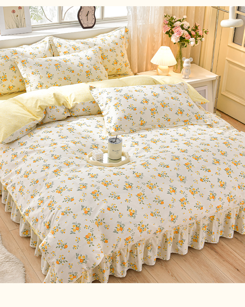 商品名称:绘萱家居 2025新款100%全棉床裙款斜纹印花四件套 初春