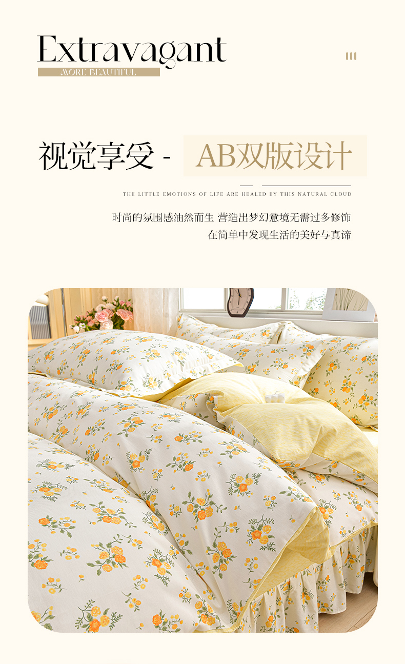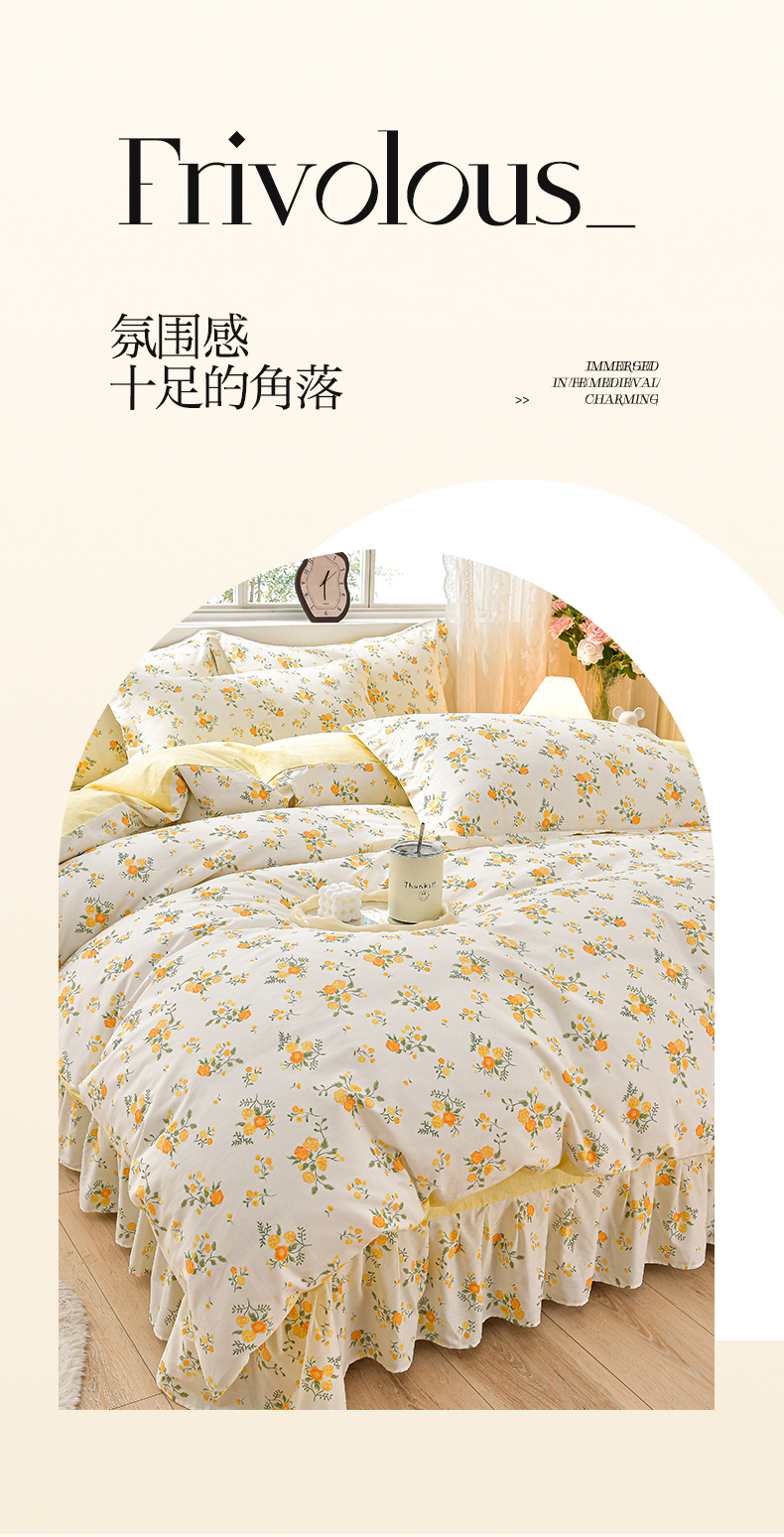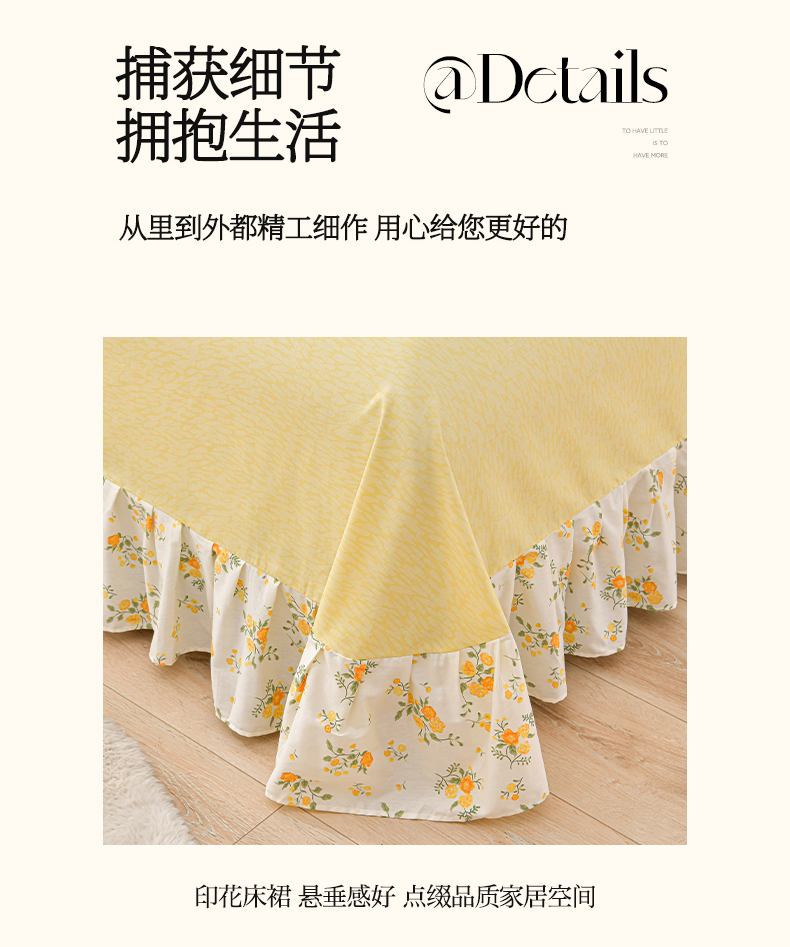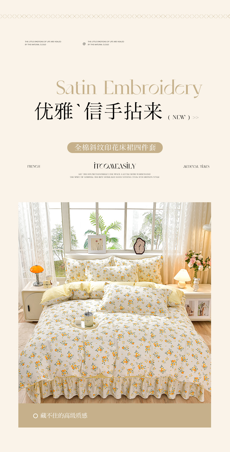 绘萱家居 2025新款100%全棉床裙款斜纹印花四件套 初春