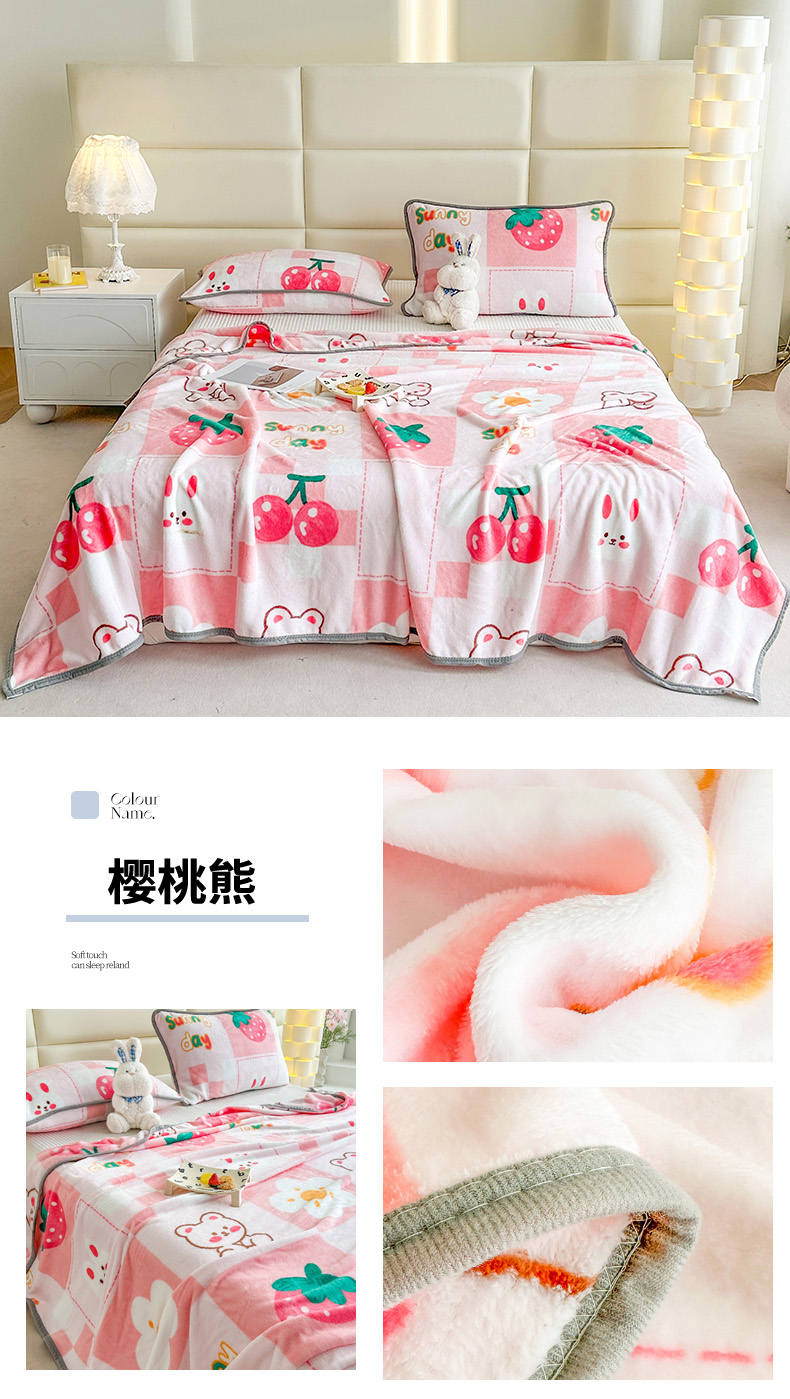 商品名称:欧喜璐 2025新款卡通印花加厚牛奶绒多功能毛毯 樱桃熊