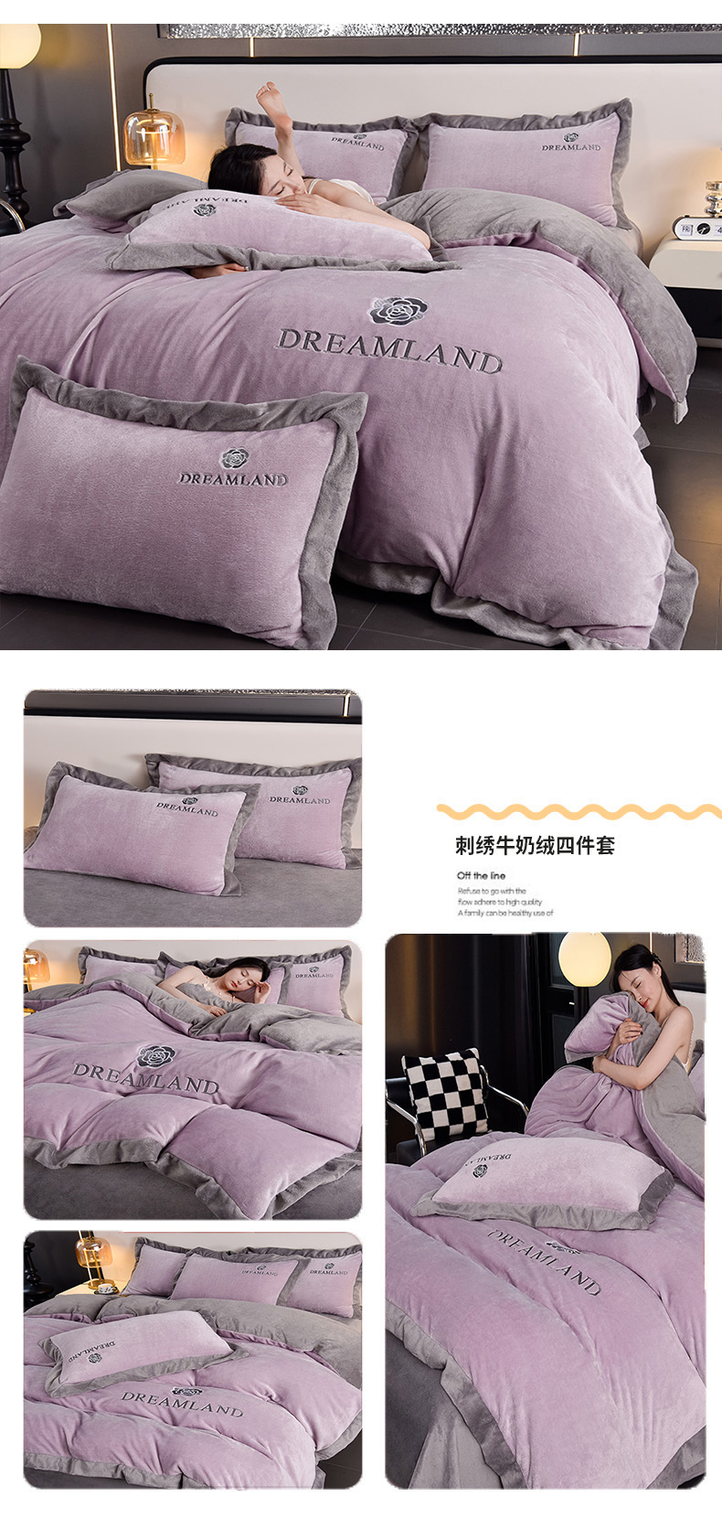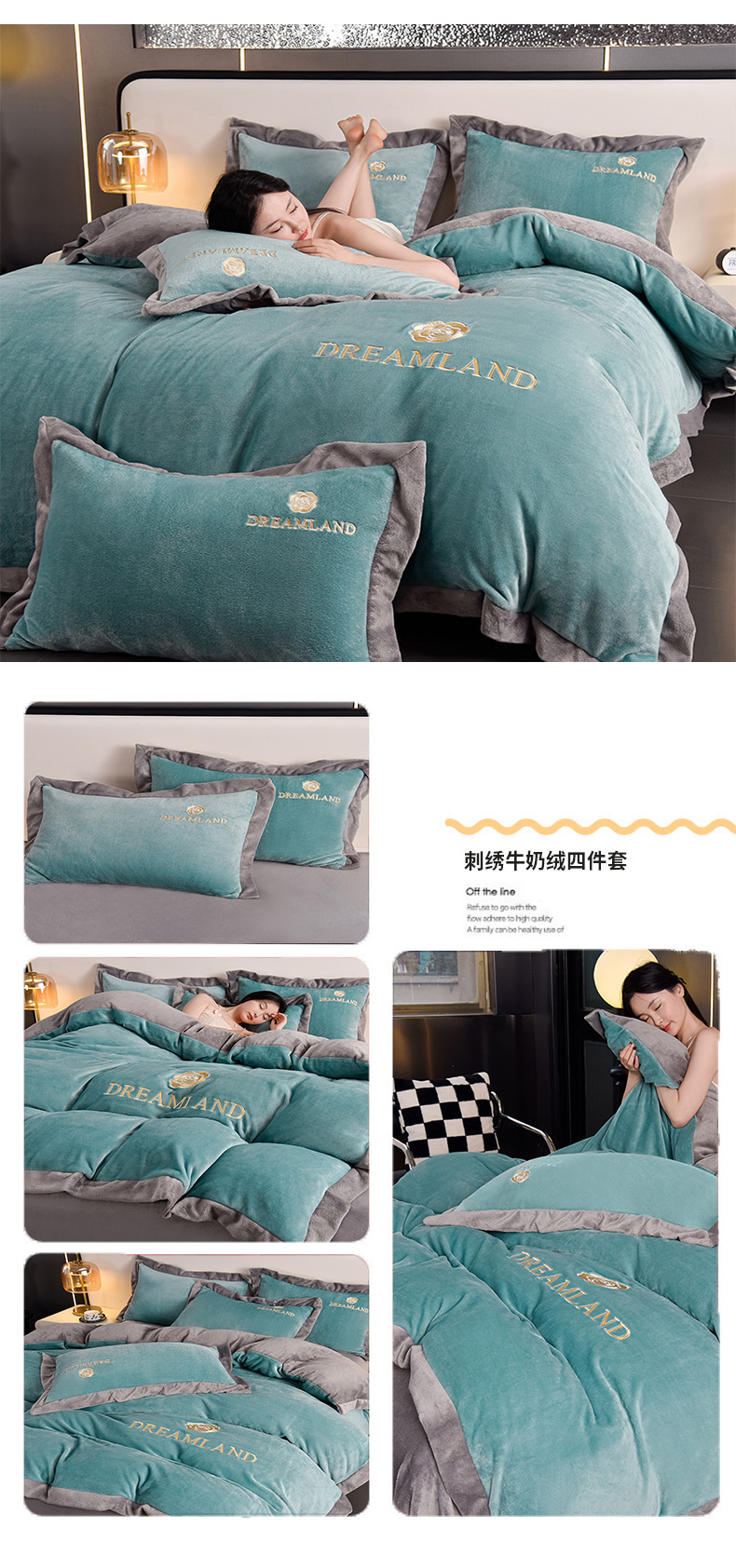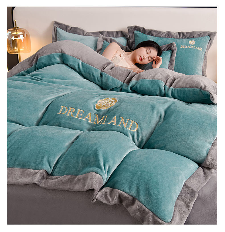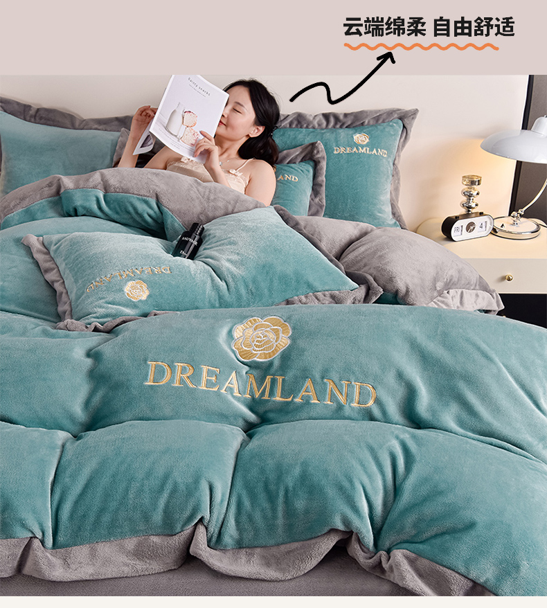 当前位置: 91家纺网 > 商品网购 > 床品套件 > 四件套 > 牛奶绒四件套 > 云恋家纺 2025新款加厚刺绣牛奶绒四件套--梦想款 梦想-蓝拼灰