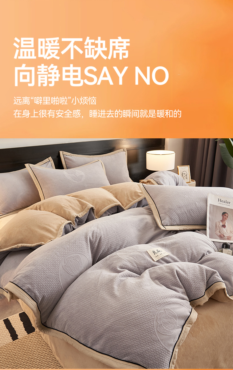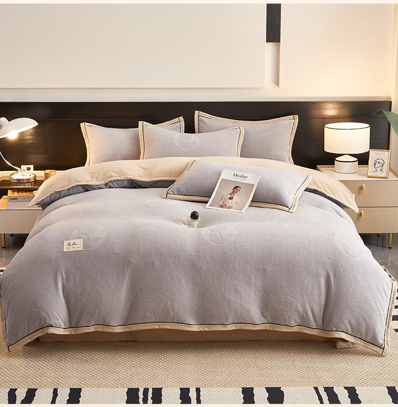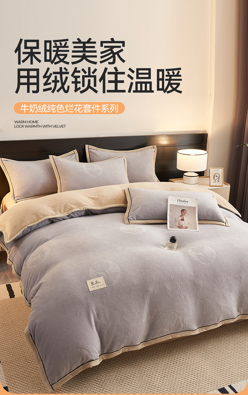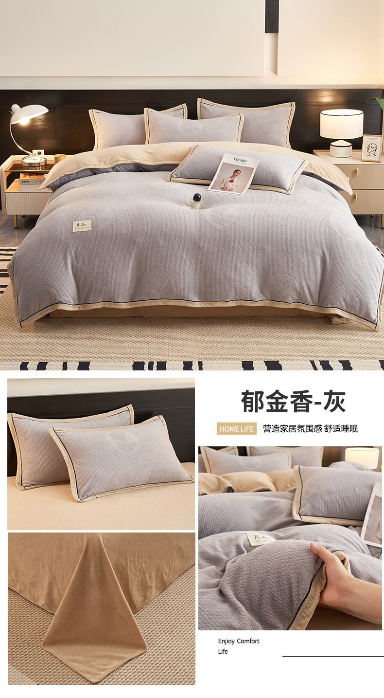 当前位置: 91家纺网 > 商品网购 > 床品套件 > 四件套 > 牛奶绒四件套 > 恒爱家纺 2025新款牛奶绒纯色烂花四件套 郁金香-灰