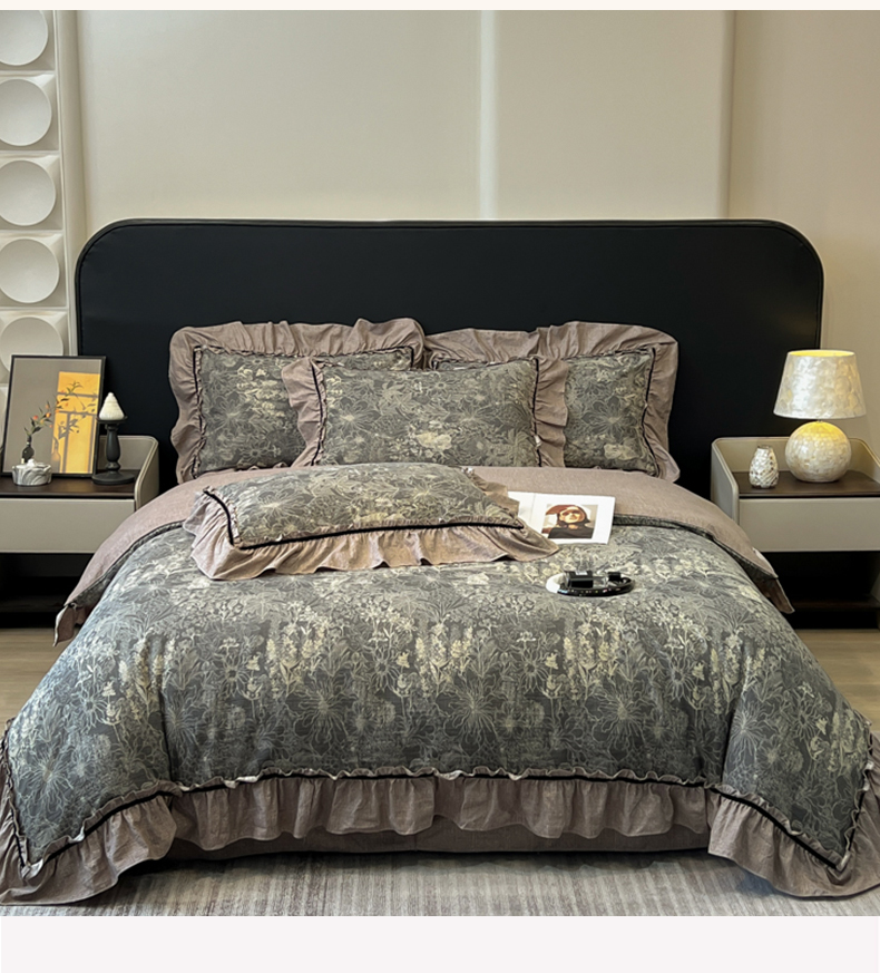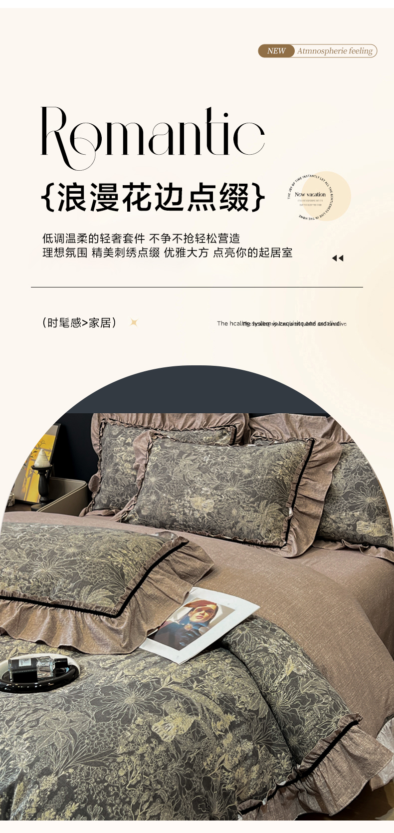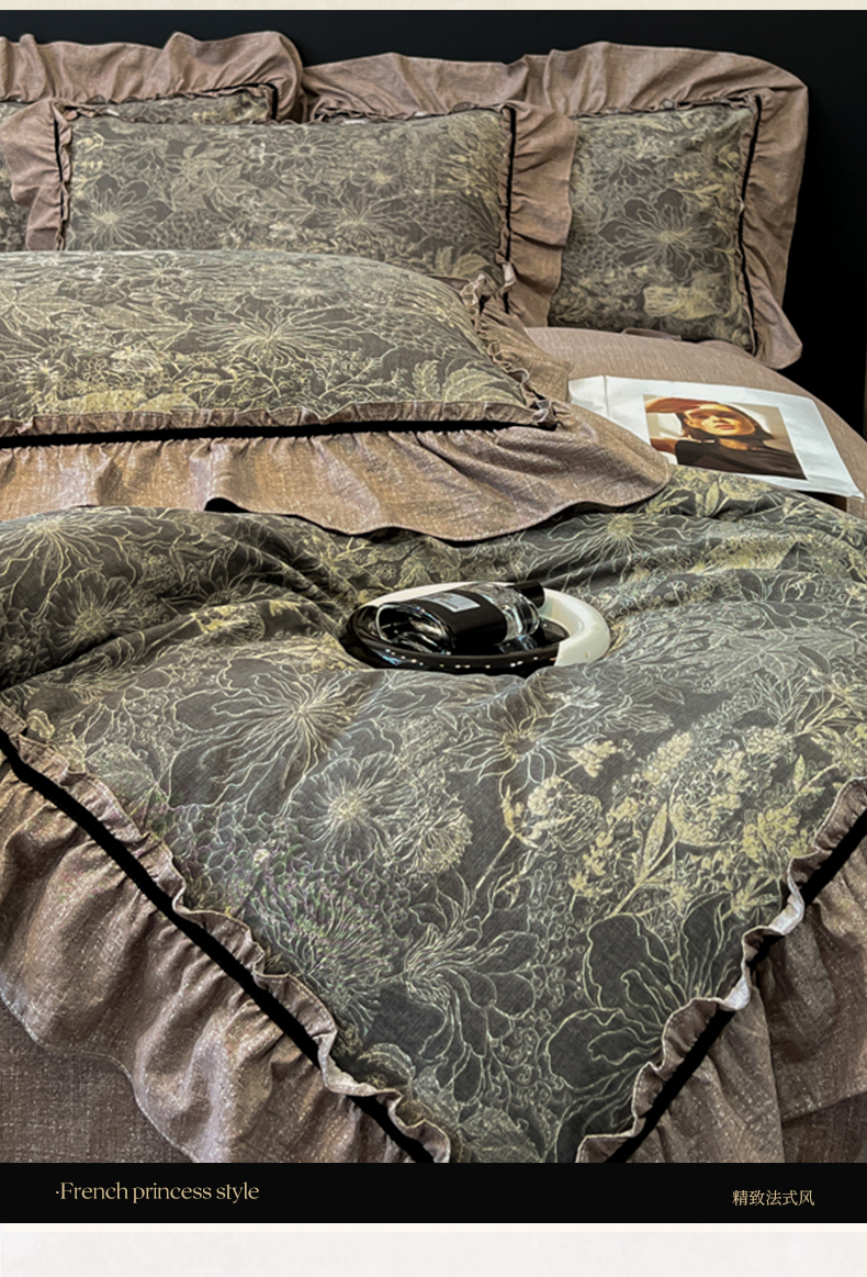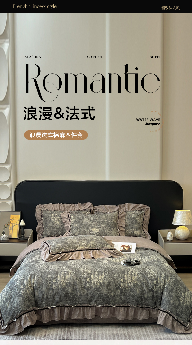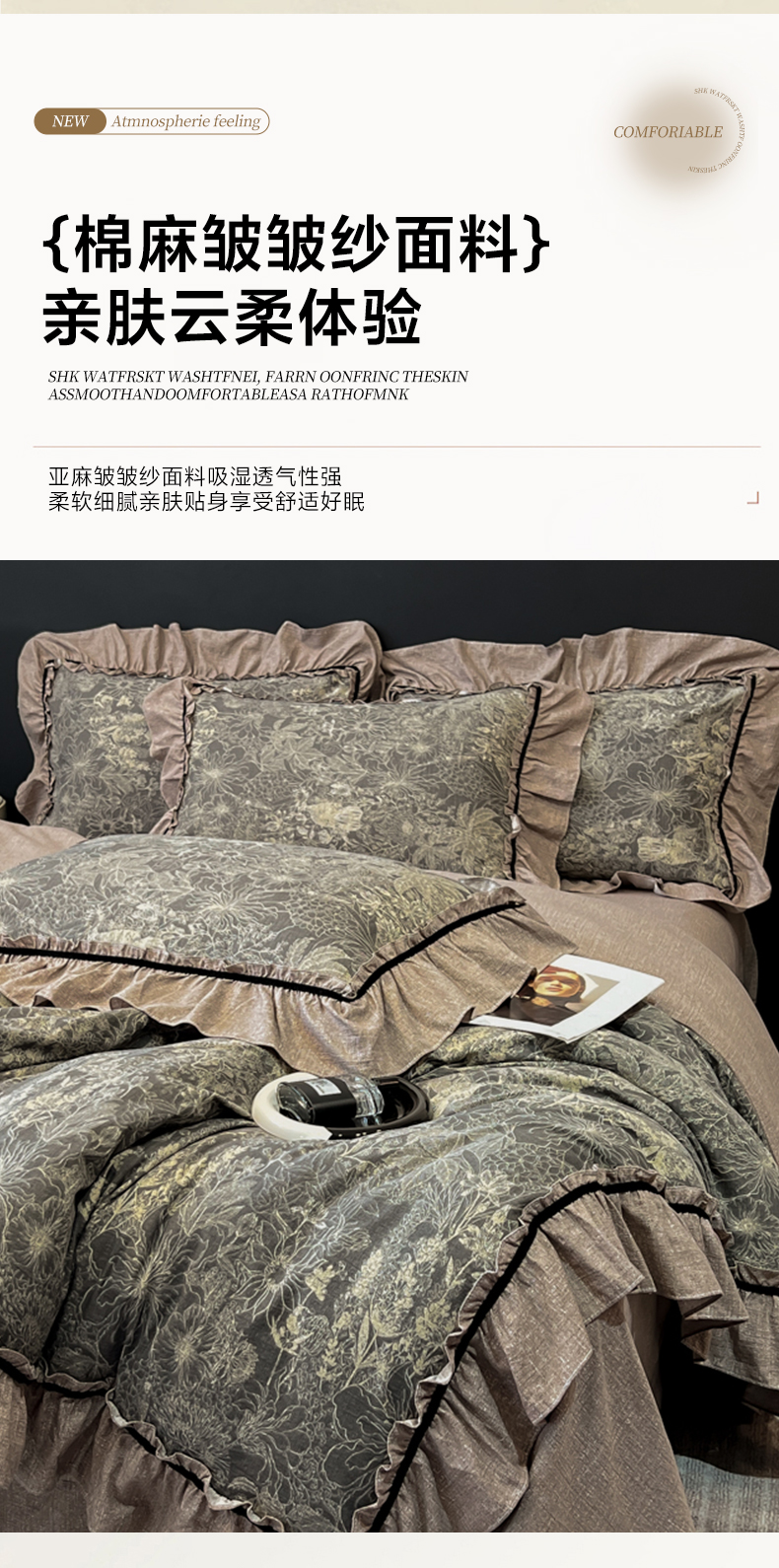玉海棠家纺 2025新款法式花边棉麻四件套 迷迭花园