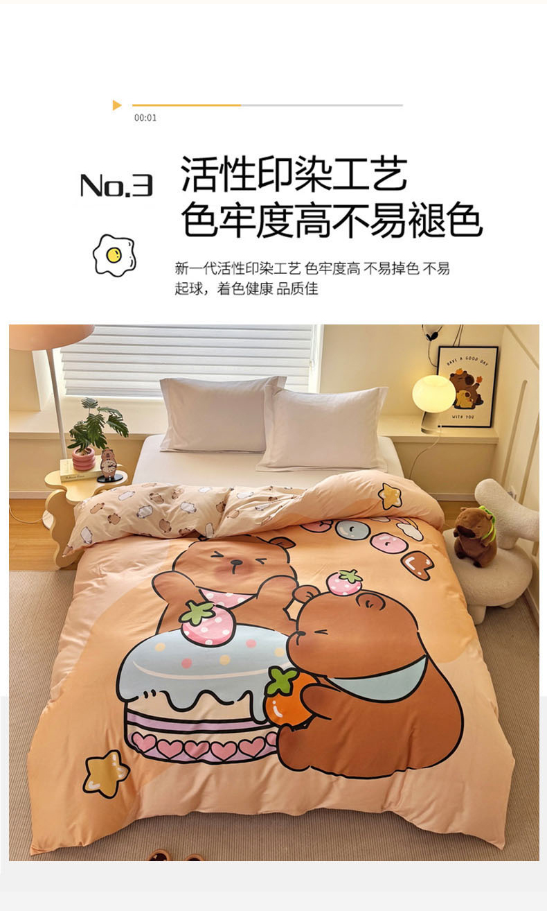 商品名称:蘭菲家纺 2025新款全棉大版卡皮巴拉系列单品被套 爱卡皮