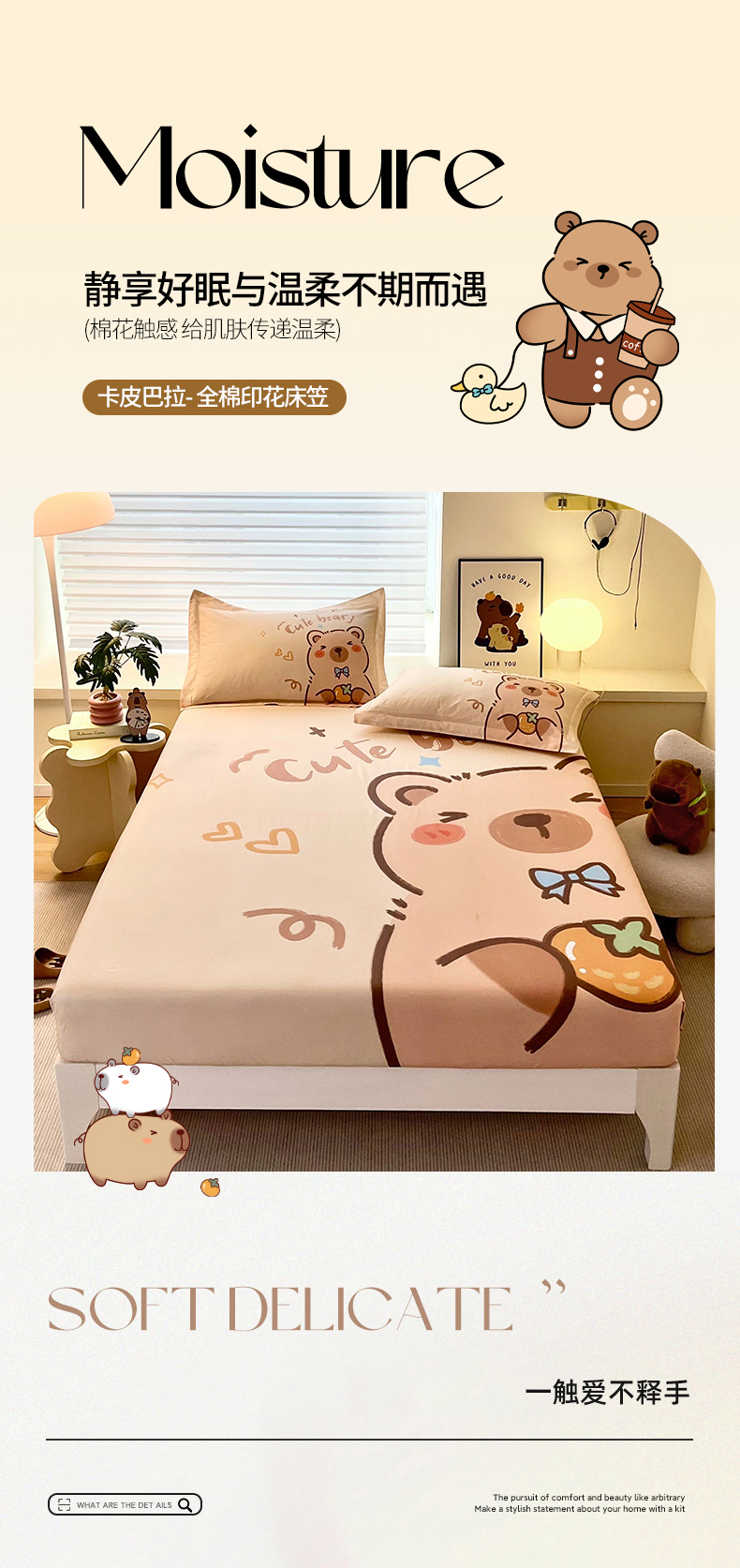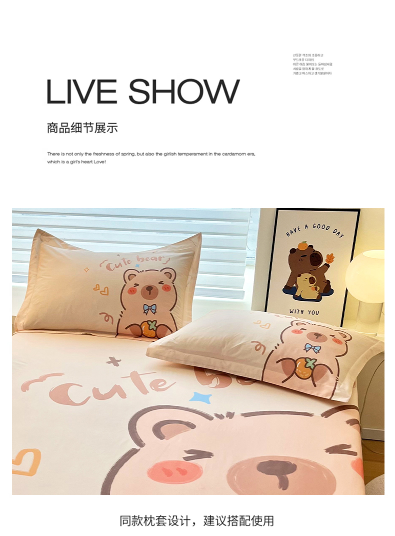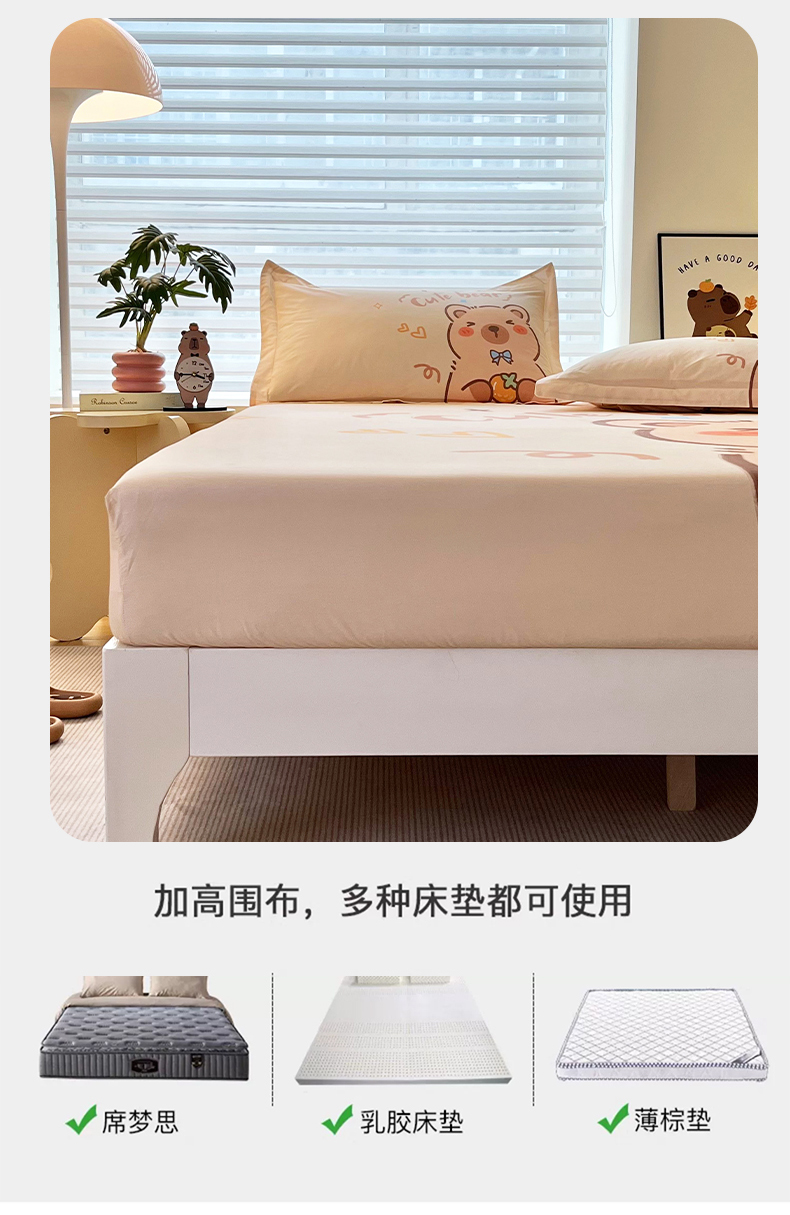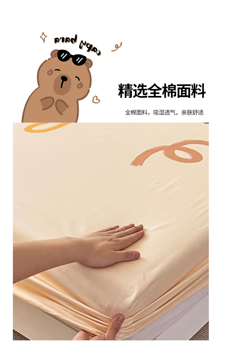 商品名称:蘭菲家纺 2025新款全棉大版卡皮巴拉系列单品床笠 大美豚