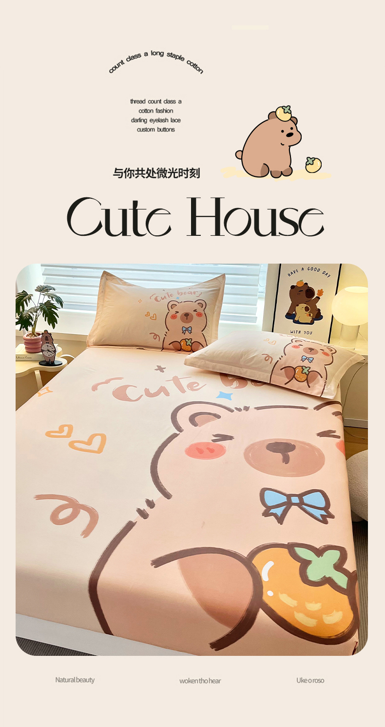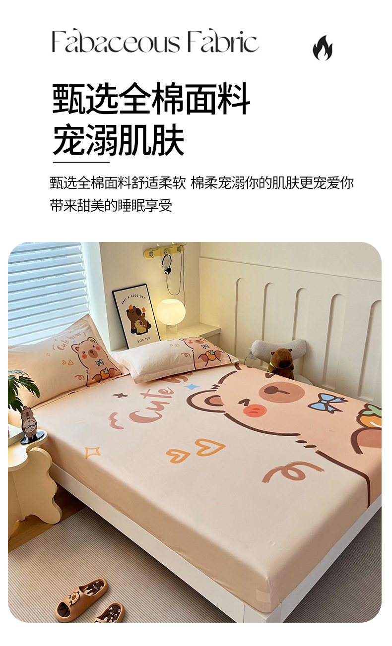 蘭菲家纺 2025新款全棉大版卡皮巴拉系列单品床笠 大美豚