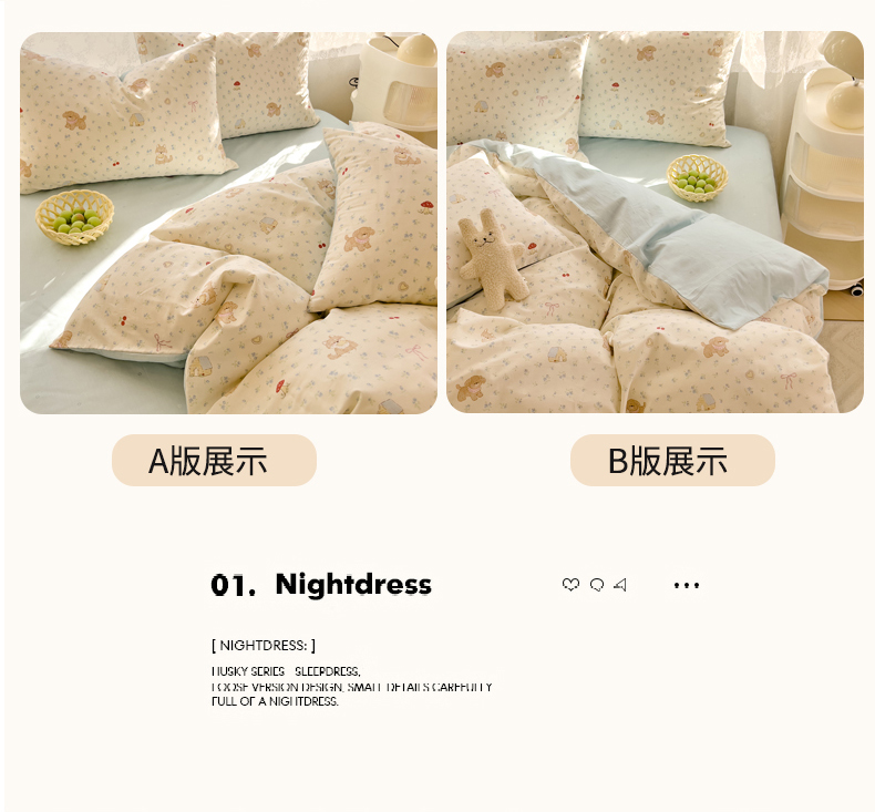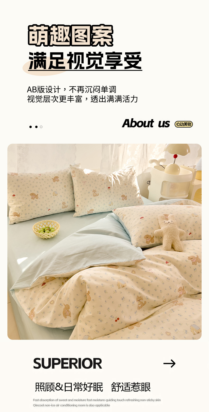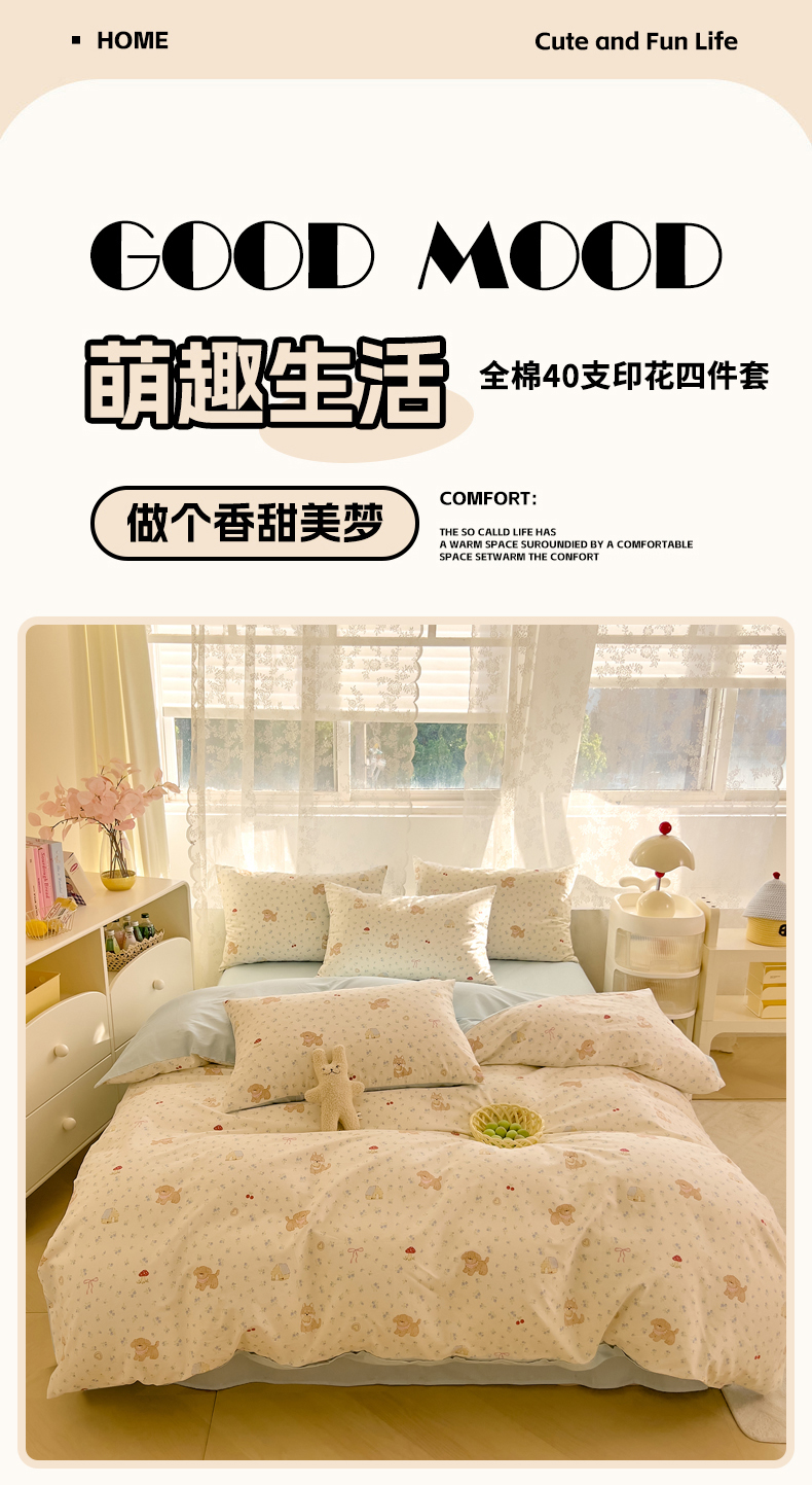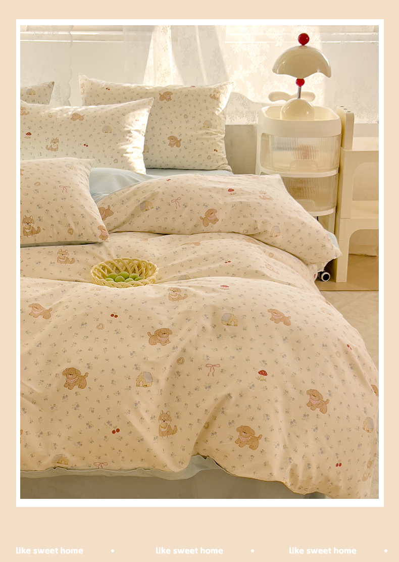 商品名称:DoDo 兜兜 2026新款卡通全棉纯棉小清新三四件套系列 (可定做尺寸) 蘑菇小狗