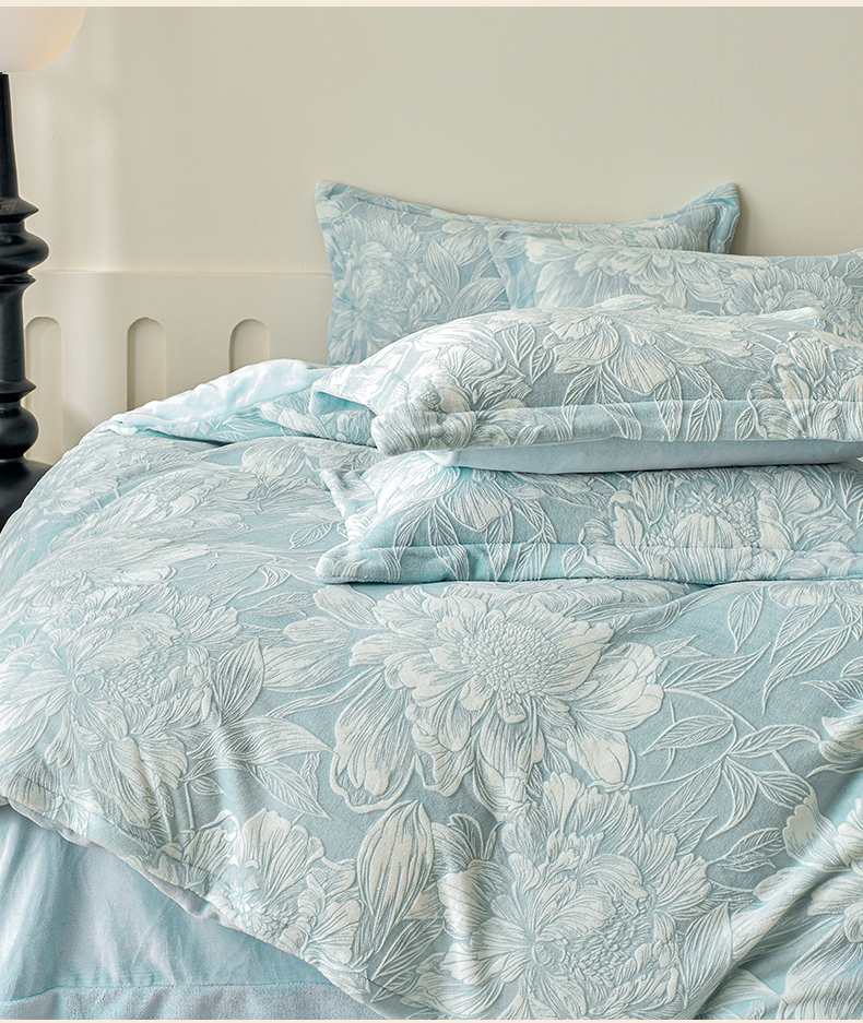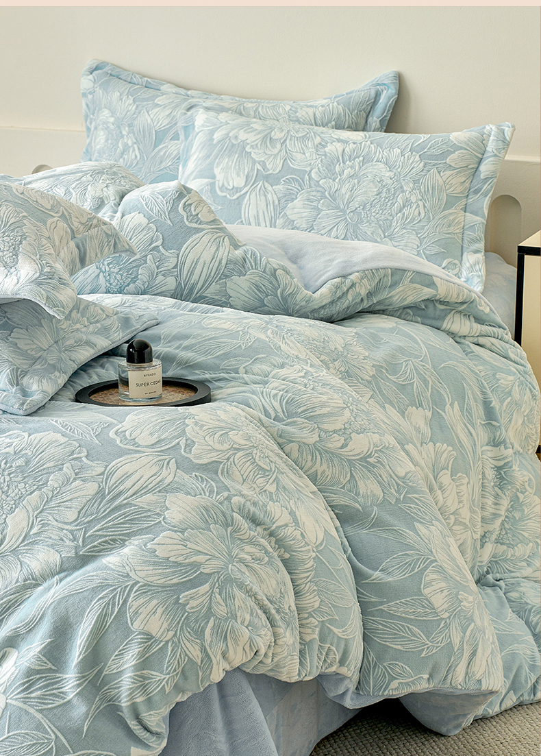 贝诗梦 2025新款高克重230克5D雕花牛奶绒四件套 花卉蓝