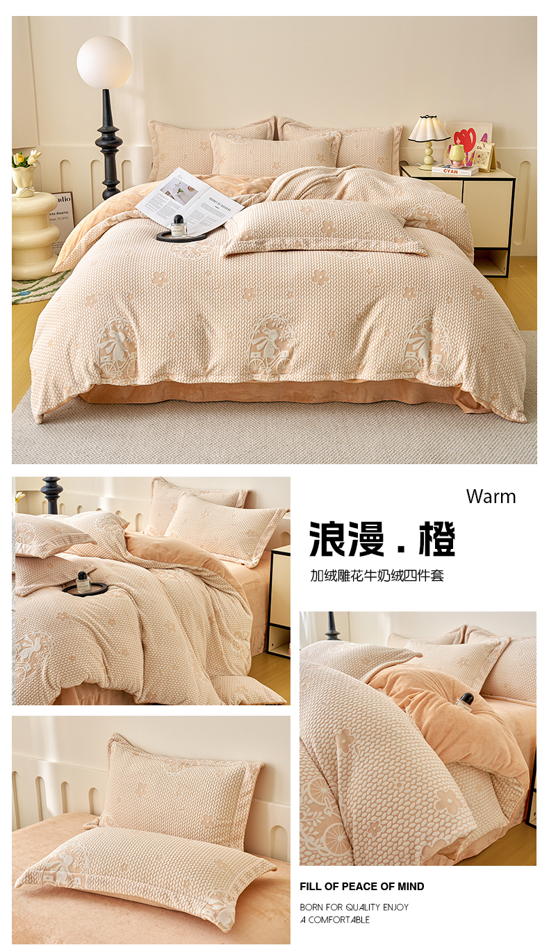 (总)贝诗梦 2025新款高克重230克5D雕花牛奶绒四件套,格调灰,格调咖,花卉粉,花卉咖,花卉蓝,花卉绿,花卉青,浪漫橙,浪漫蓝,柳叶青,生活橙,时尚咖