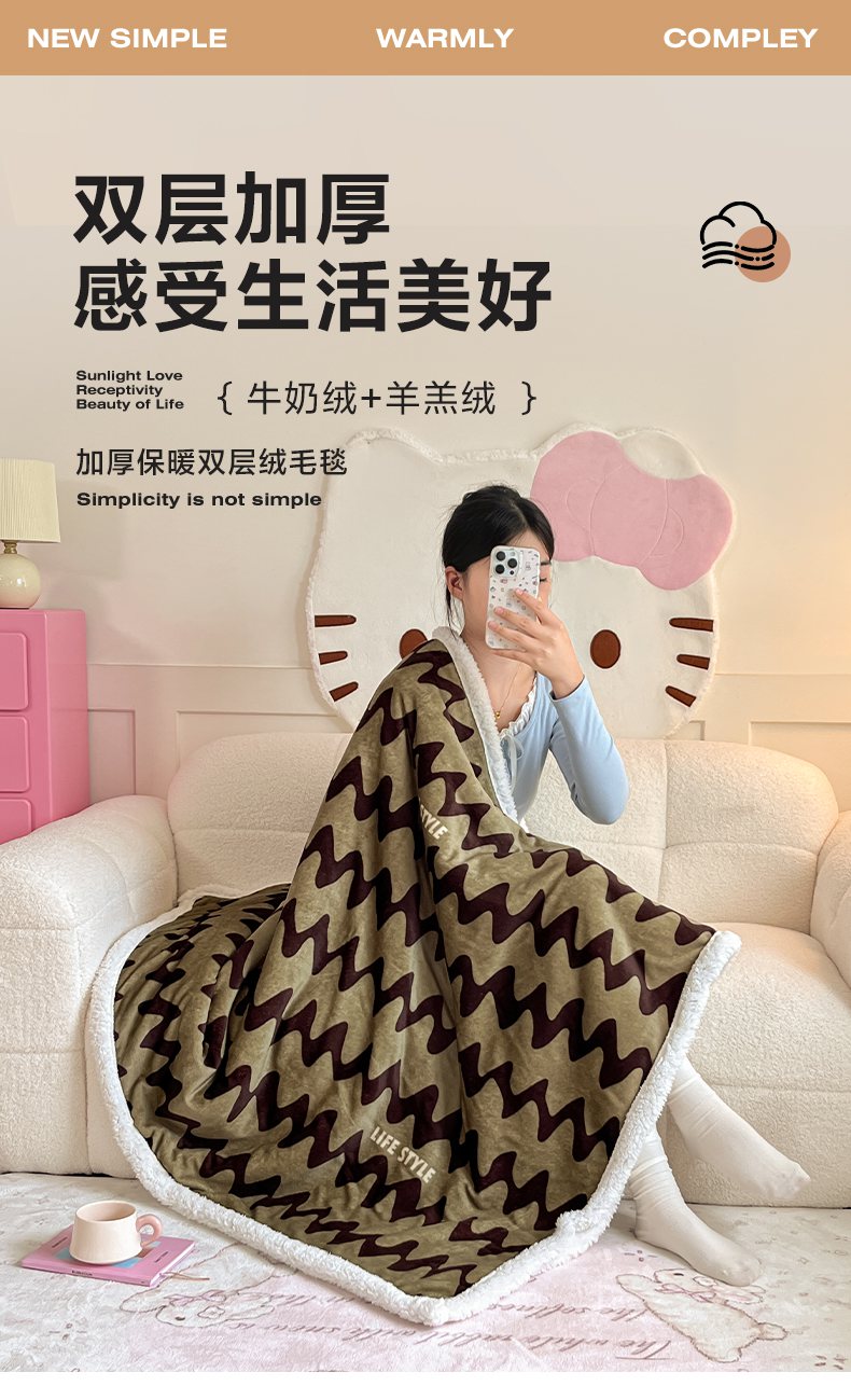商品名称:川悦生活 2025新款牛奶绒羊羔绒毯子毛毯 毛毯简一轻咖