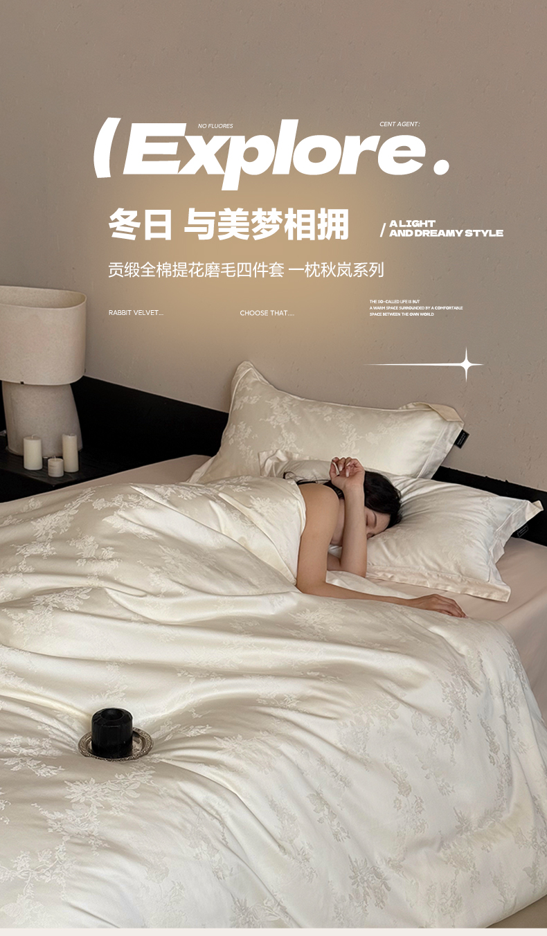 三味舒屋 2025新款全棉提花磨毛四件套-一枕秋岚 一枕秋岚-月白
