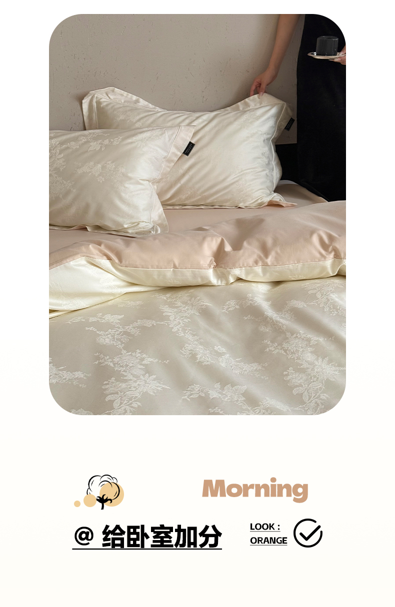商品名称:三味舒屋 2025新款全棉提花磨毛四件套-一枕秋岚 一枕秋岚-月白