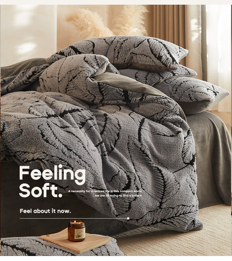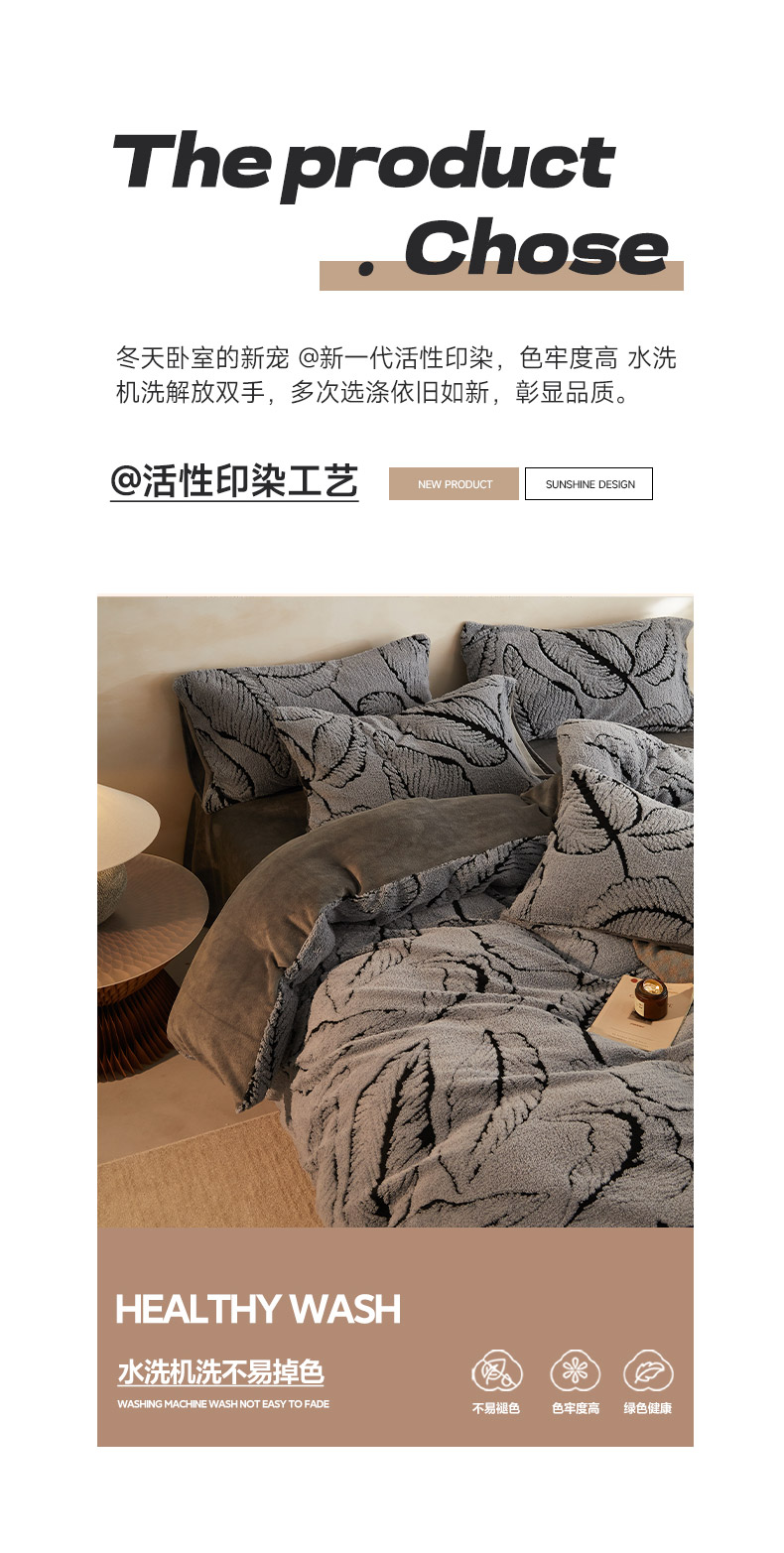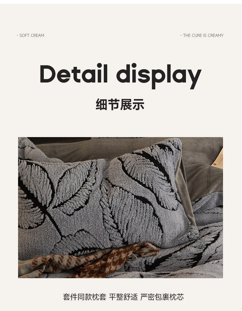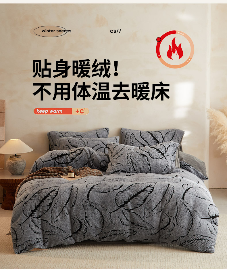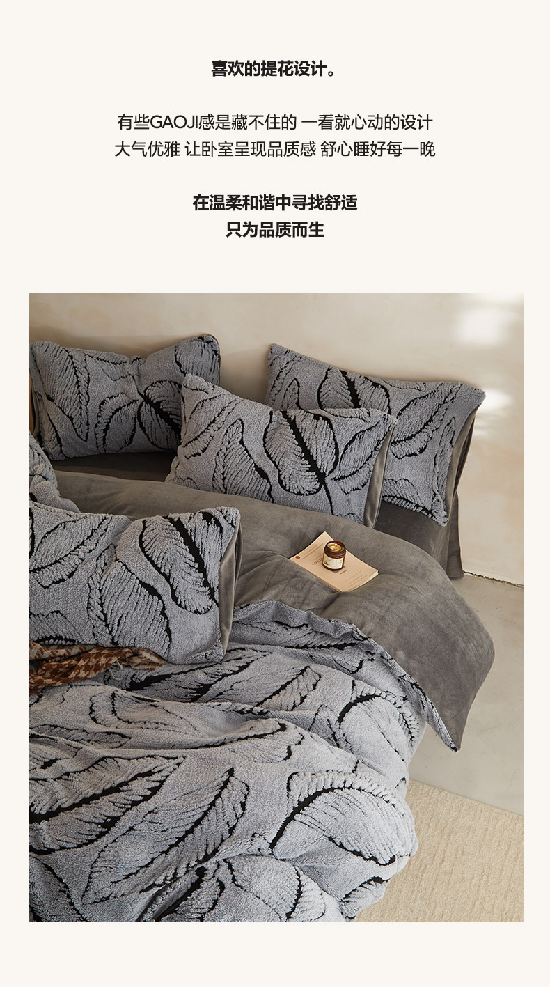 当前位置: 91家纺网 > 商品网购 > 床品套件 > 四件套 > 其它四件套 > 吾诺家居 2025秋冬新款提花绵羊绒四件套 树叶灰