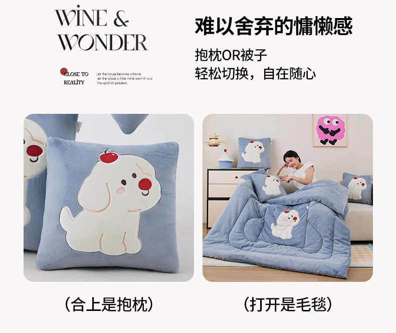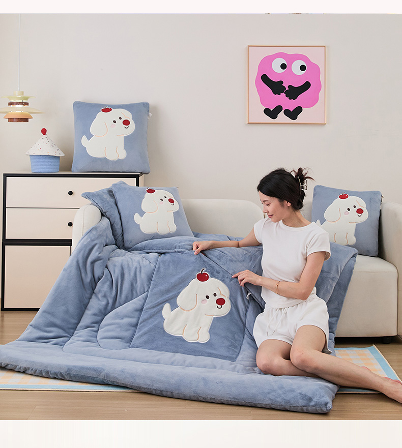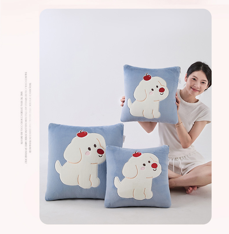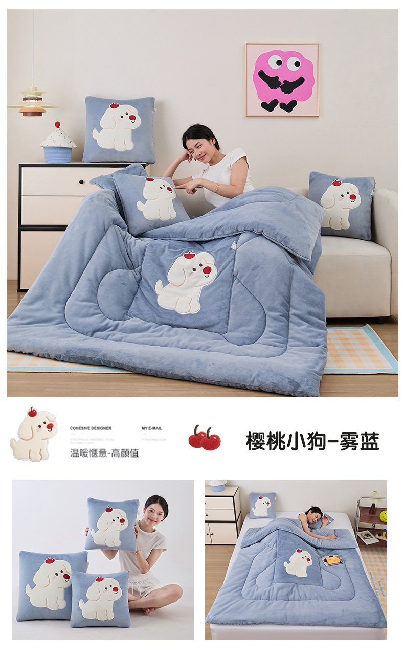 哩哩熊2025抱枕被子两用加厚牛奶绒二合一汽车载枕头办公室午睡毯子冬天靠枕-樱桃小狗 樱桃小狗-雾蓝