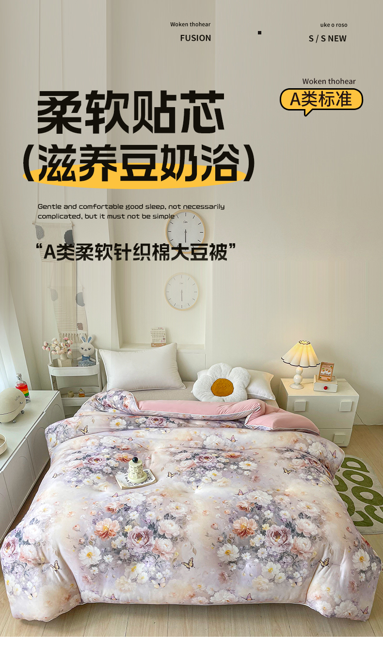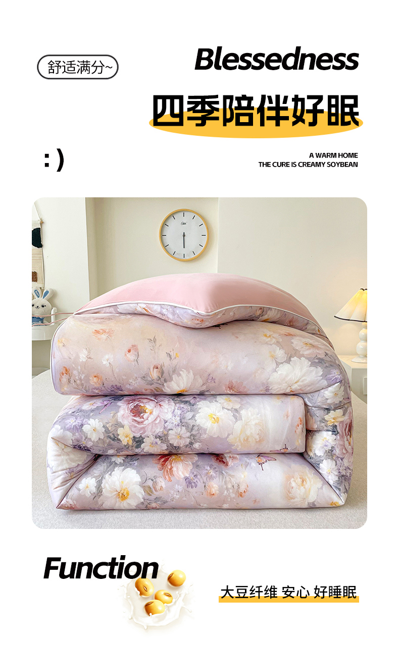 • 91家纺网 家纺一手货源 找家纺 小禹仔家纺  2025新款亲肤柔软大豆被数码印花针织棉大豆被冬被子被芯春秋被 云裳兰,云裳兰