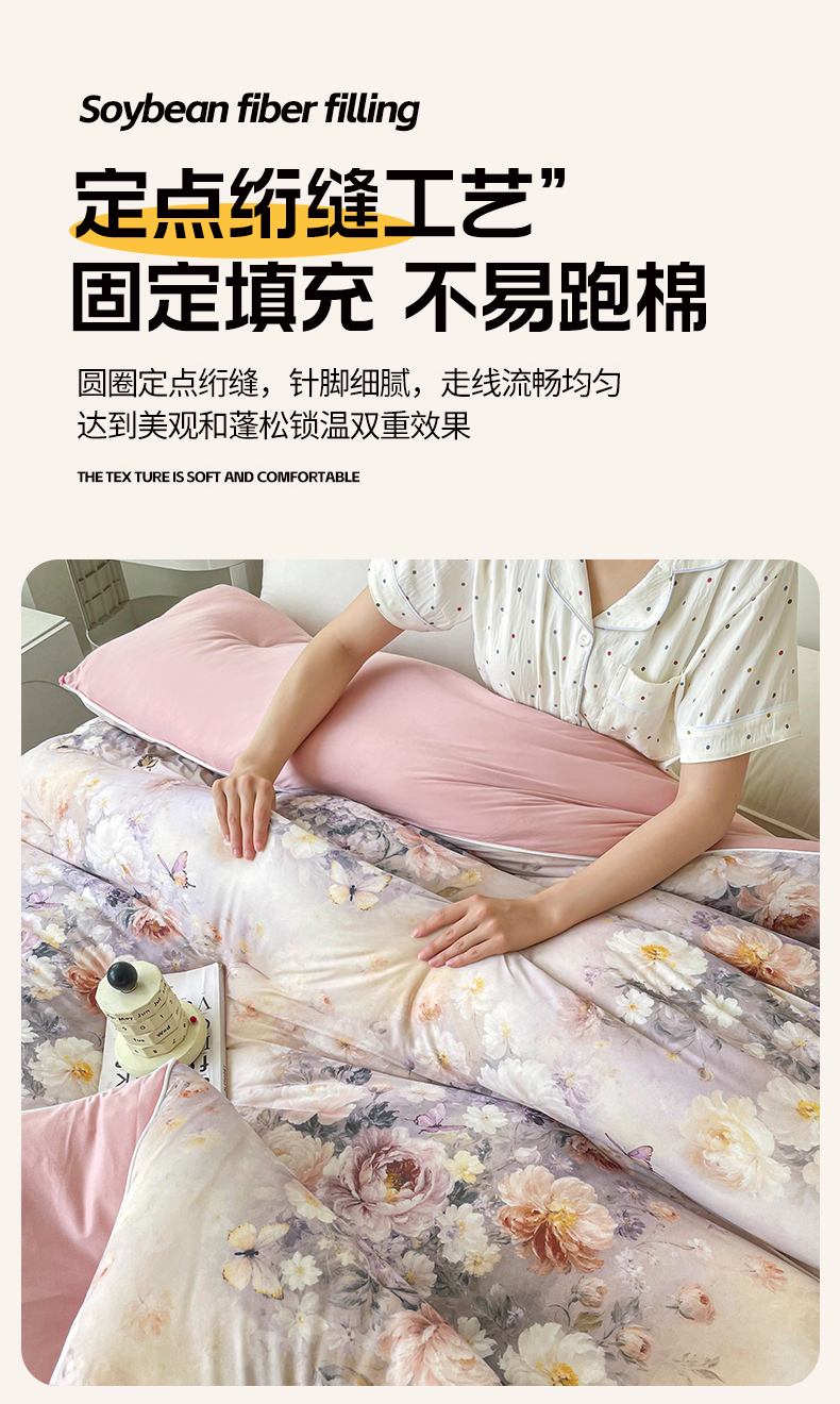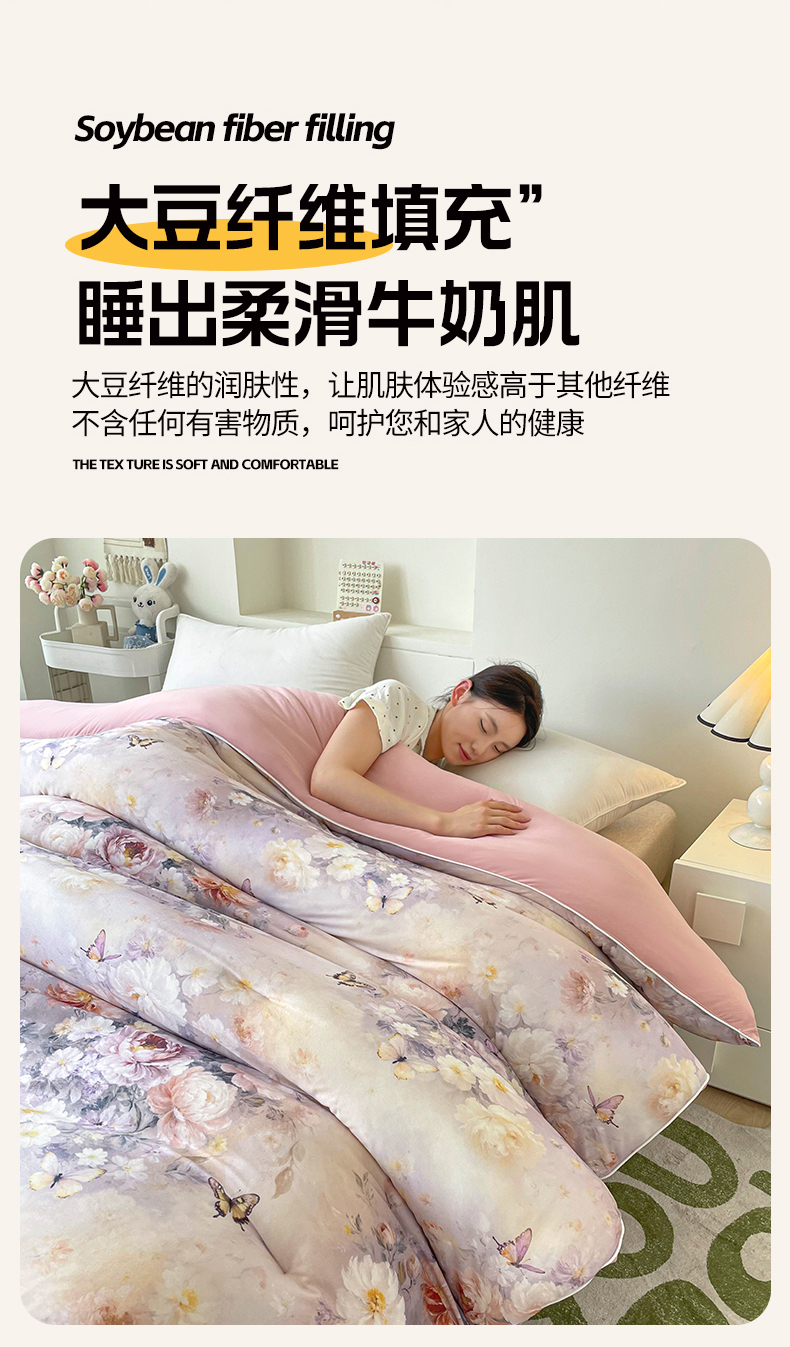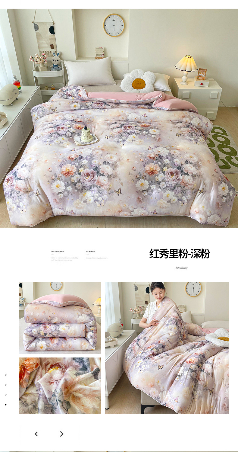 • 91家纺网 家纺一手货源 找家纺 小禹仔家纺  2025新款亲肤柔软大豆被数码印花针织棉大豆被冬被子被芯春秋被 红秀里粉