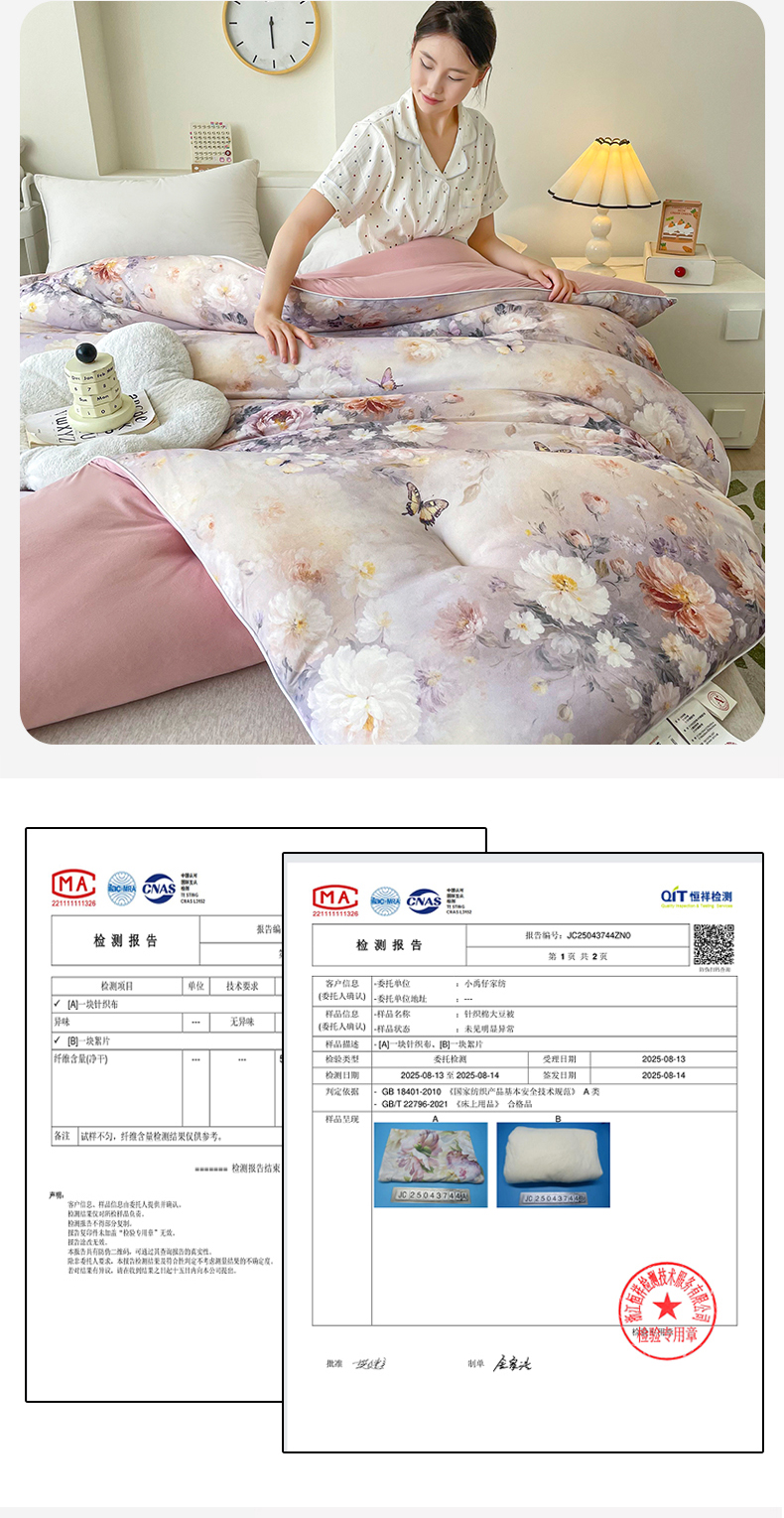 • 填充纤维种类: 大豆蛋白改性聚酯纤维
