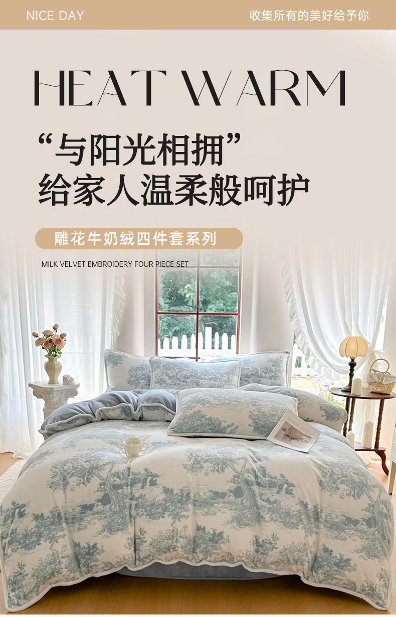 (总)亿品家纺 2025新款八斤立体雕花牛奶绒四件套,北欧经典【绿】,繁花【灰】,好梦秋天【粉】,花季【浅咖】,画意枝头【芥末绿】,乐枝【米灰】,暮云春叶【绿】,叶中花【卡其】,云思梦想【蓝】,长夏叶蔓【桔】,仲夏【卡其】