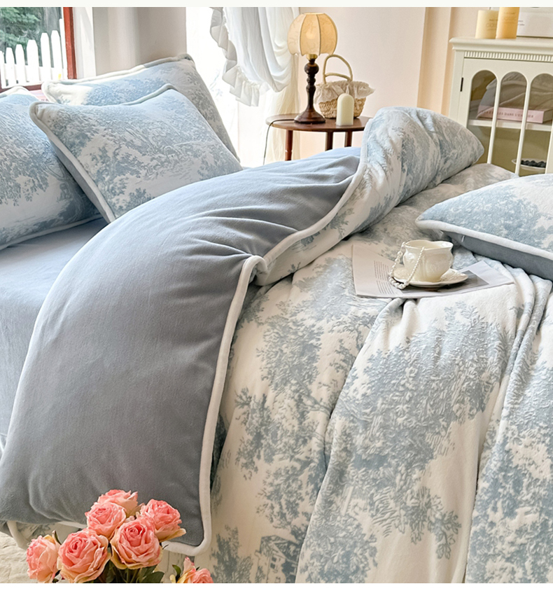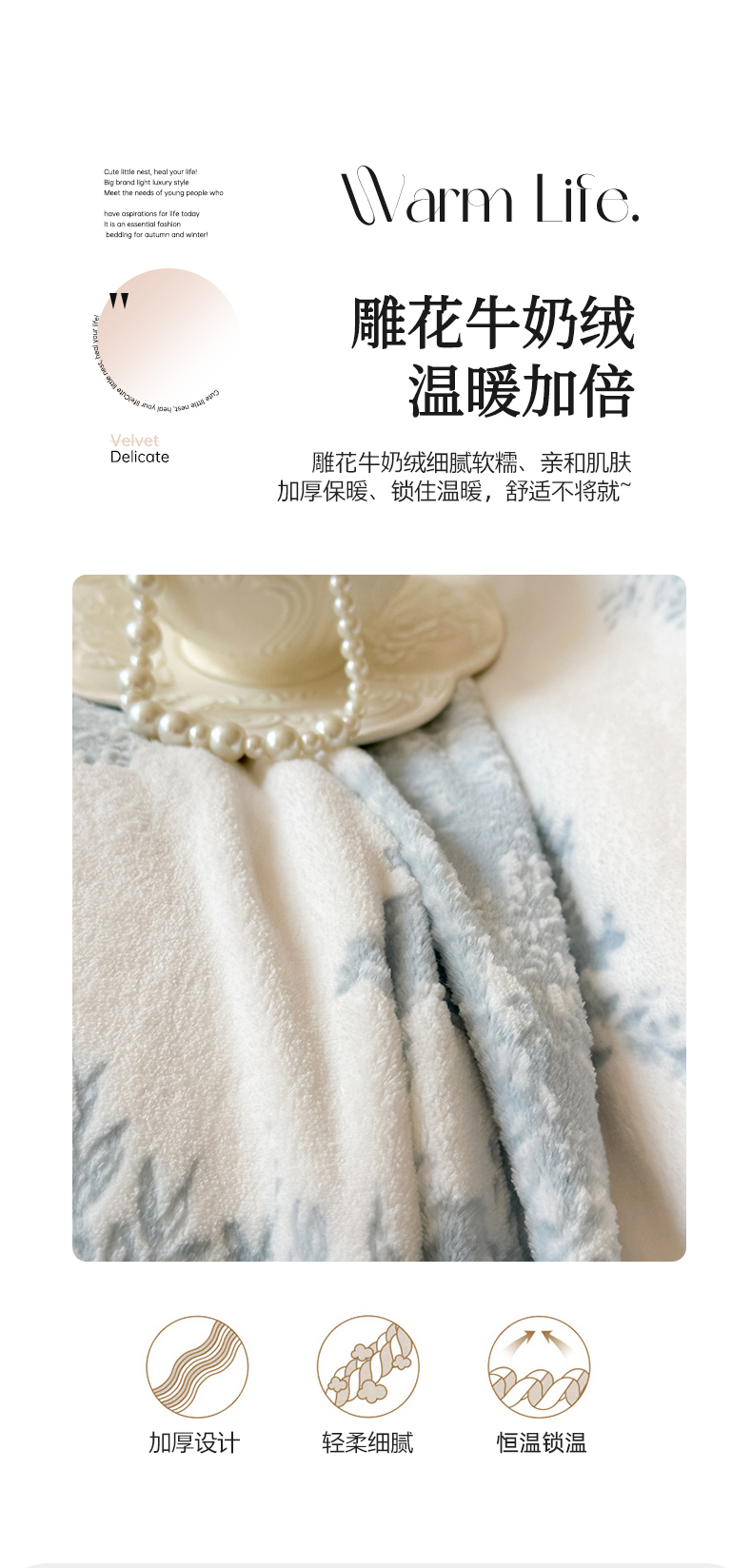 亿品家纺 2025新款八斤立体雕花牛奶绒四件套 云思梦想【蓝】