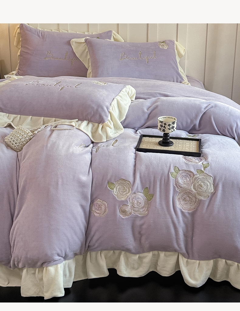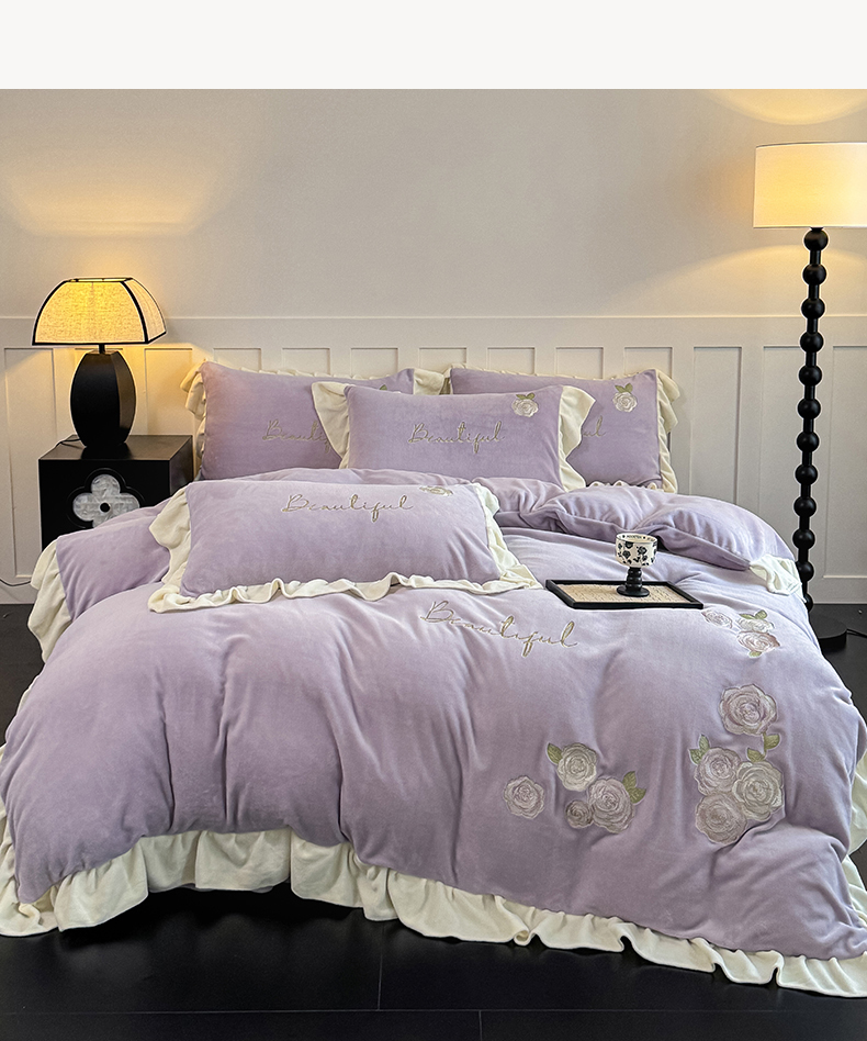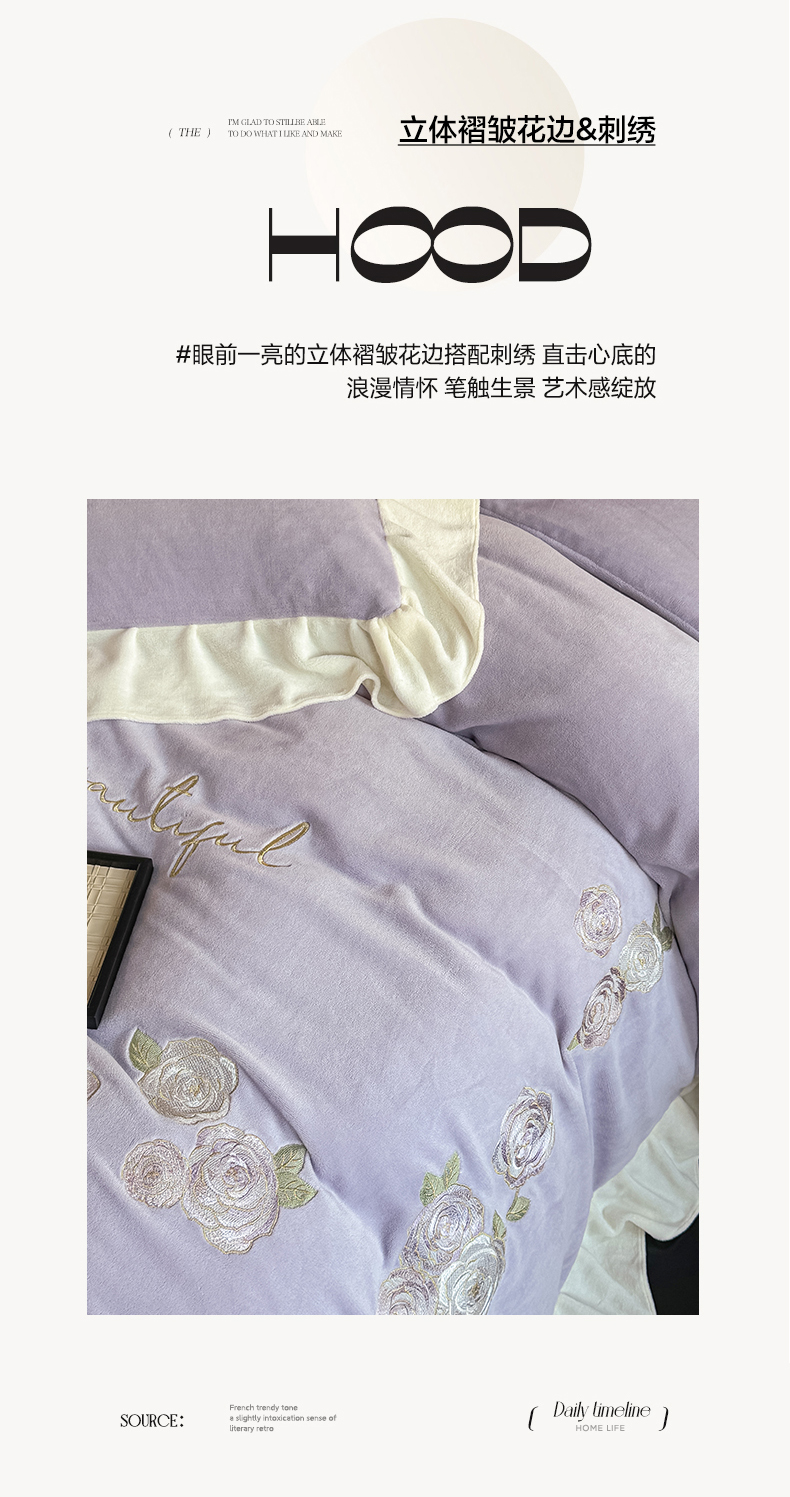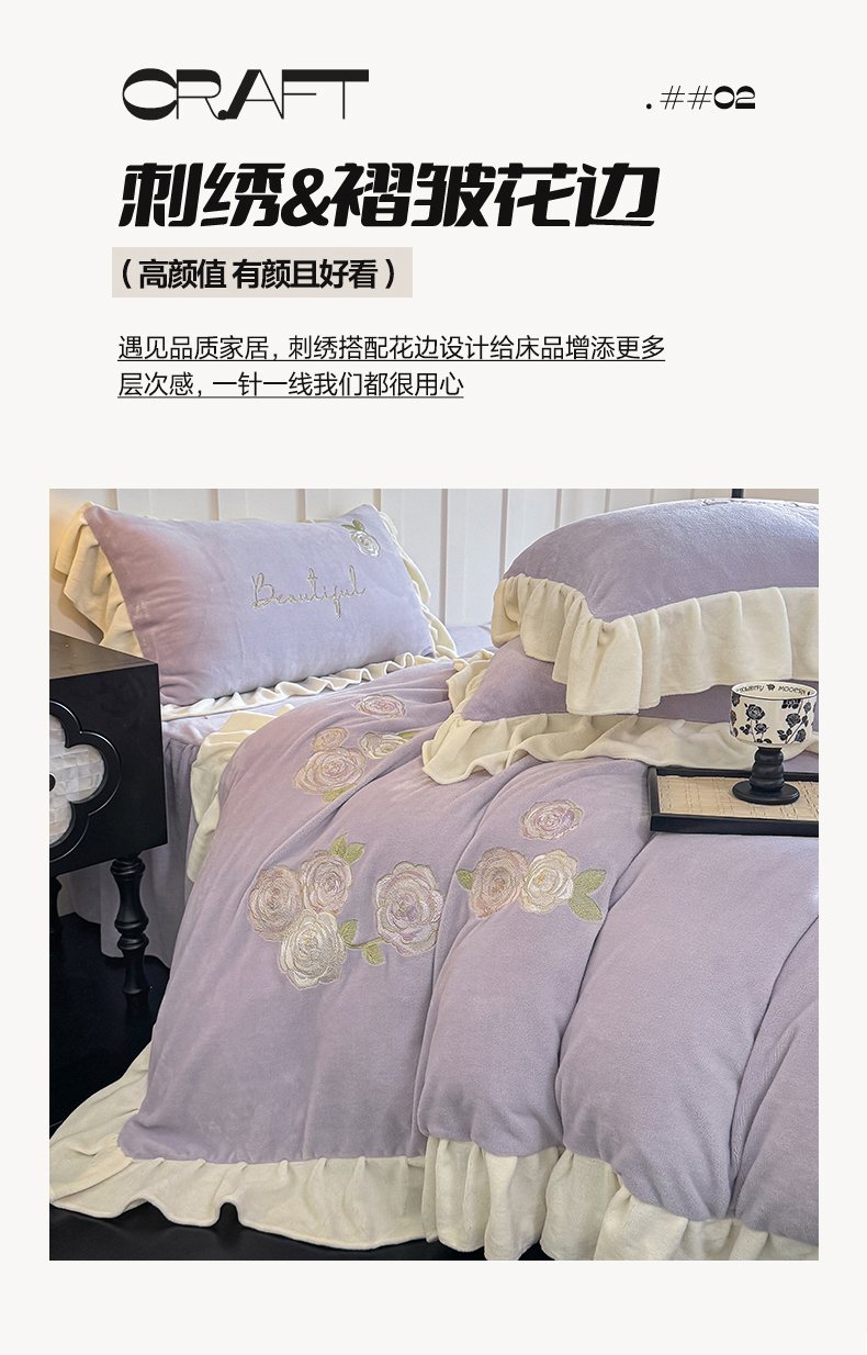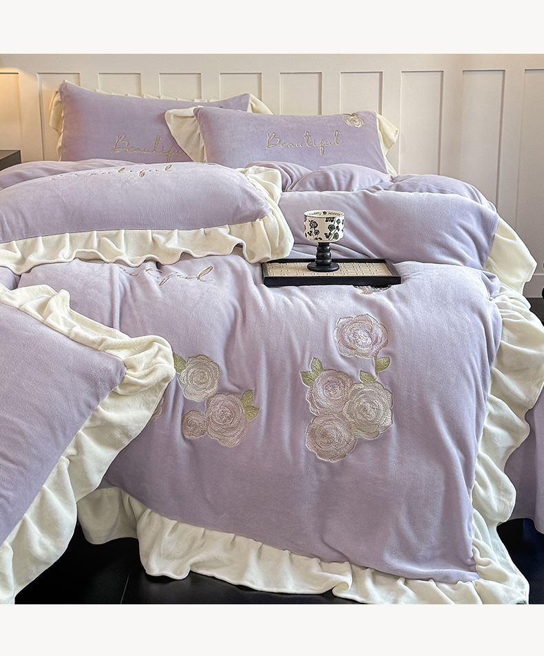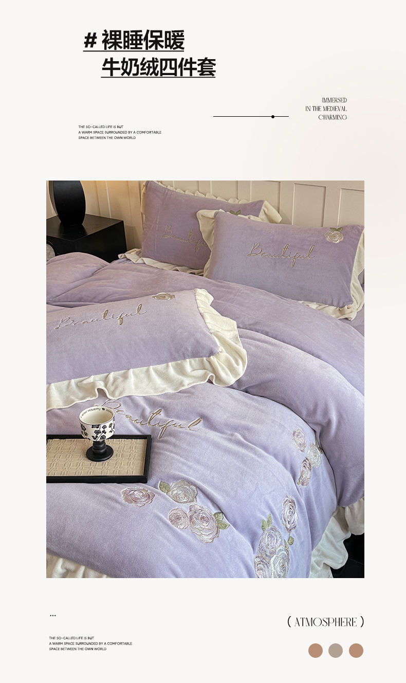 当前位置: 91家纺网 > 商品网购 > 床品套件 > 四件套 > 牛奶绒四件套 > KA家纺 2025新款冬高克重刺绣床裙款花边款牛奶绒四件套-秘密花园系列 秘密花园紫