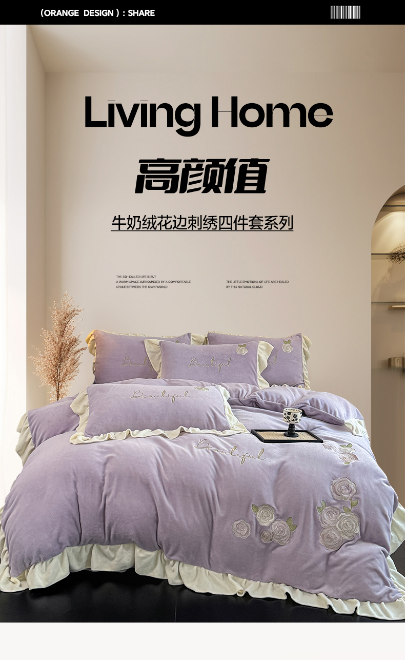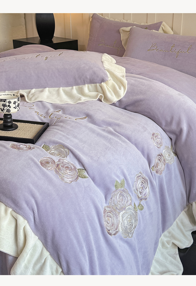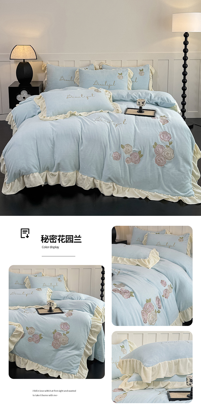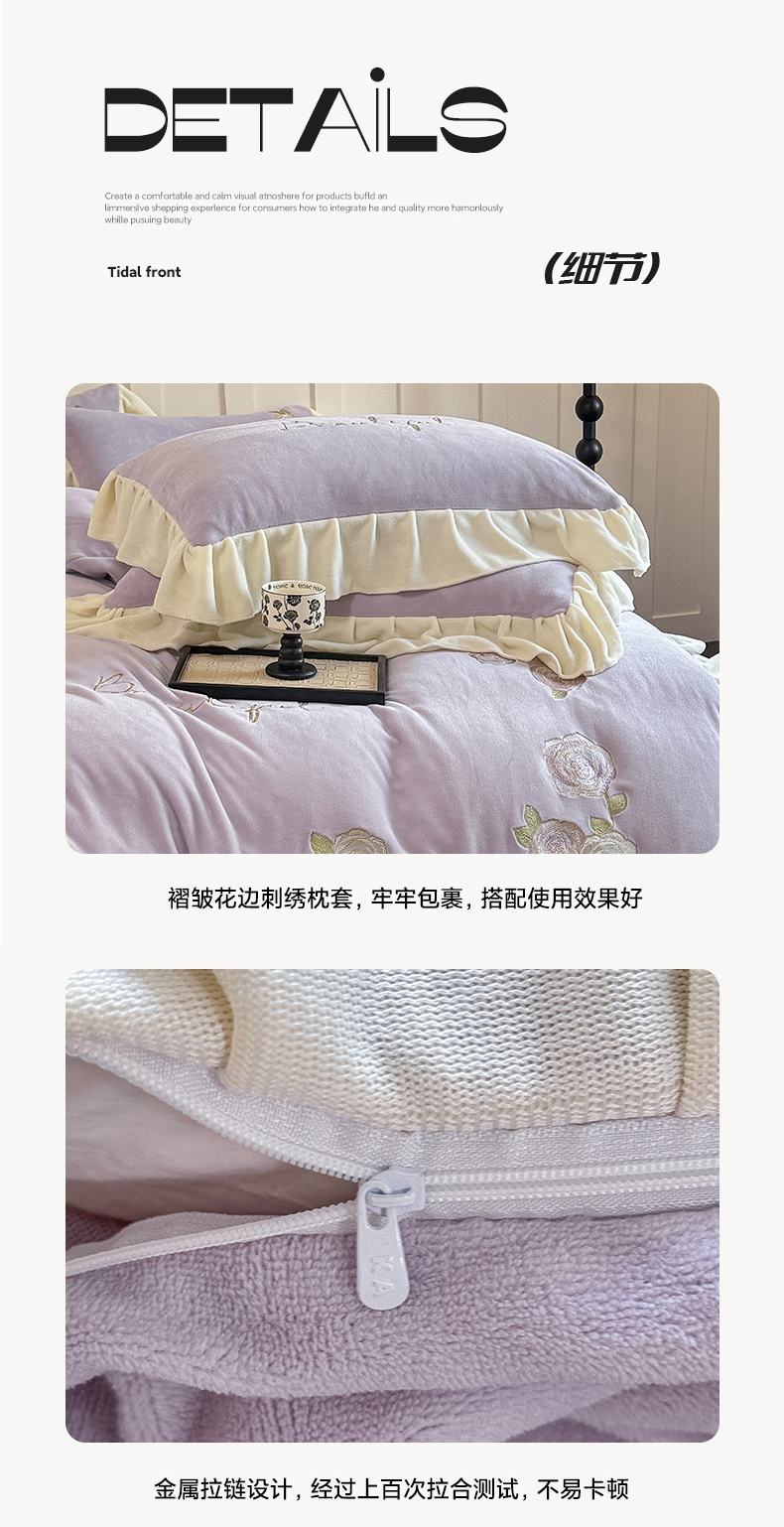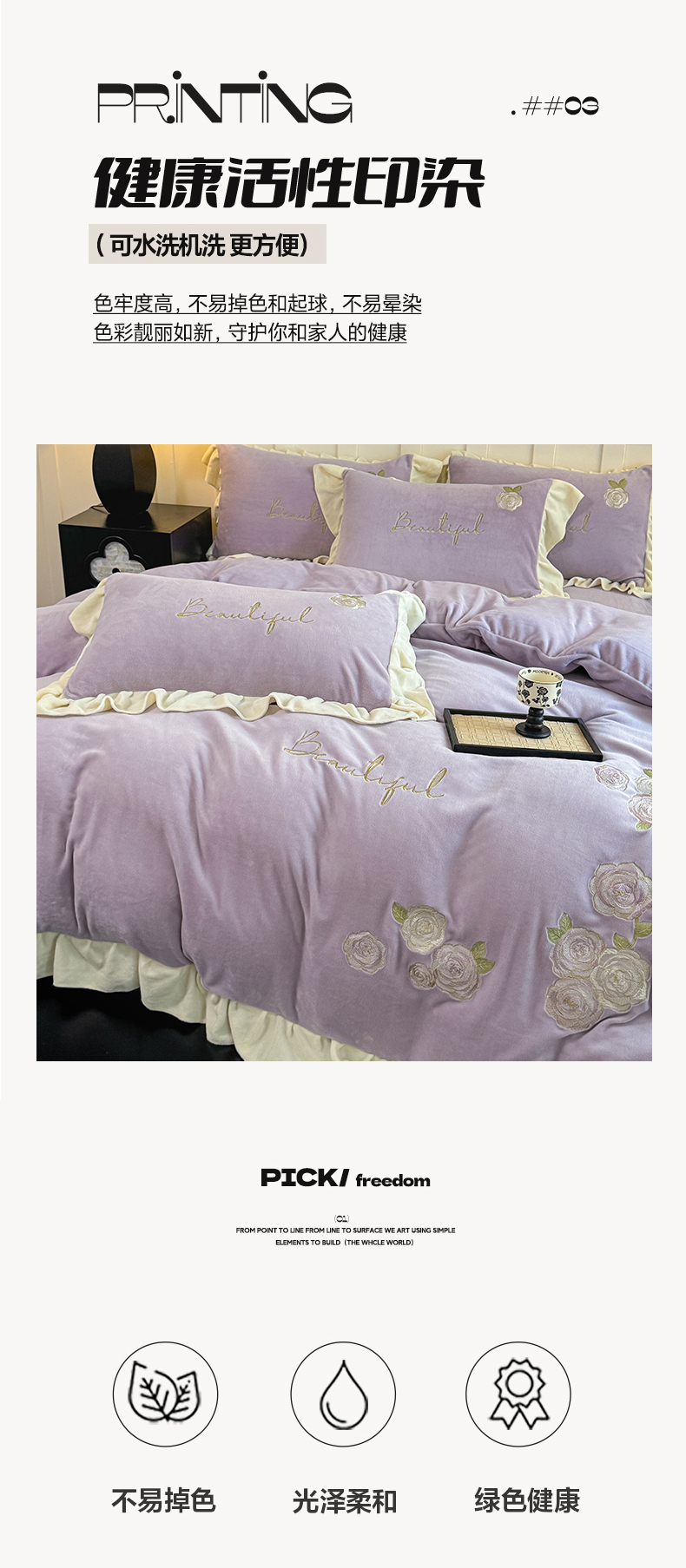 当前位置: 91家纺网 > 商品网购 > 床品套件 > 四件套 > 牛奶绒四件套 > KA家纺 2025新款冬高克重刺绣床裙款花边款牛奶绒四件套-秘密花园系列 秘密花园紫