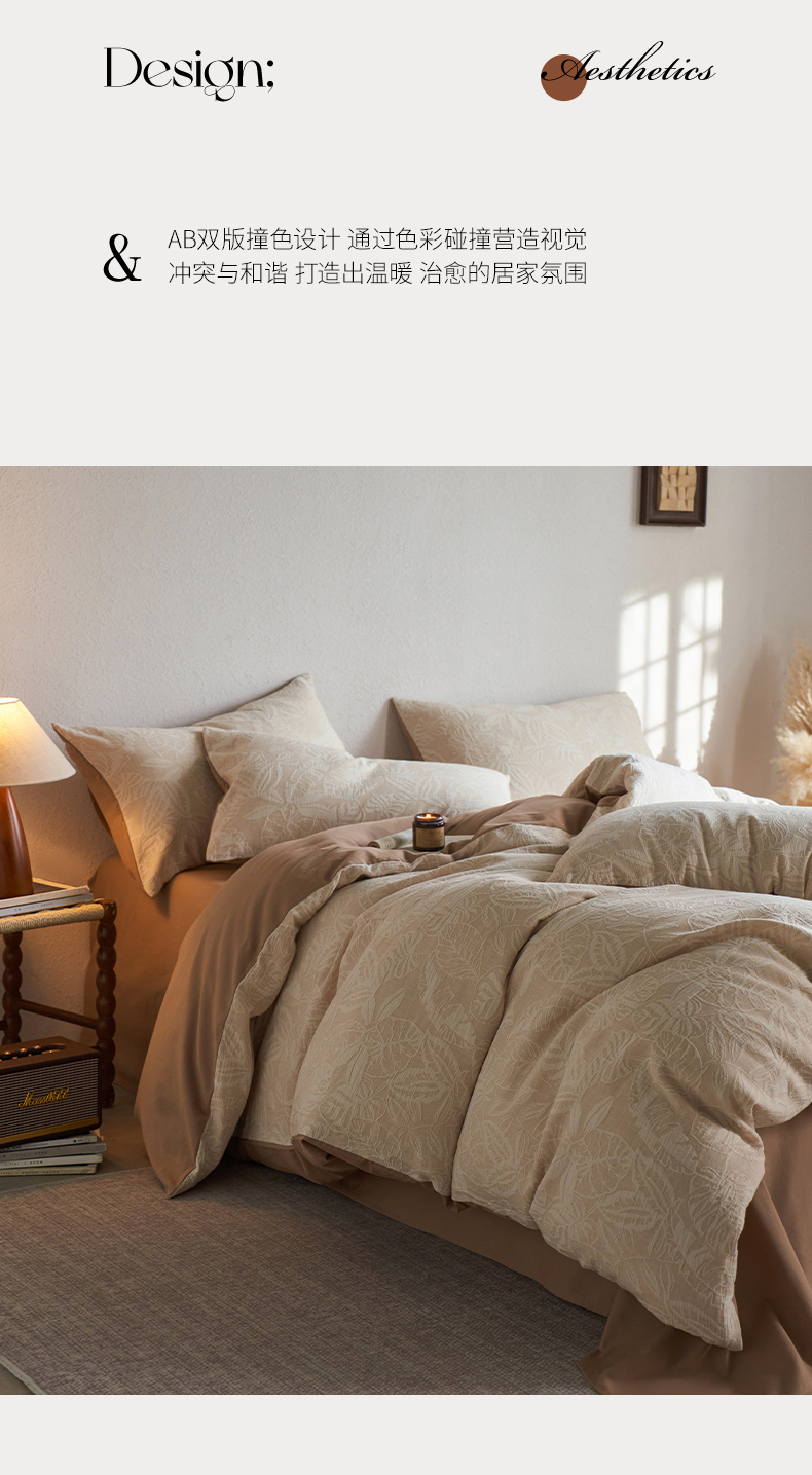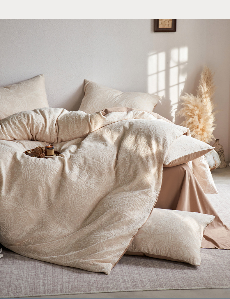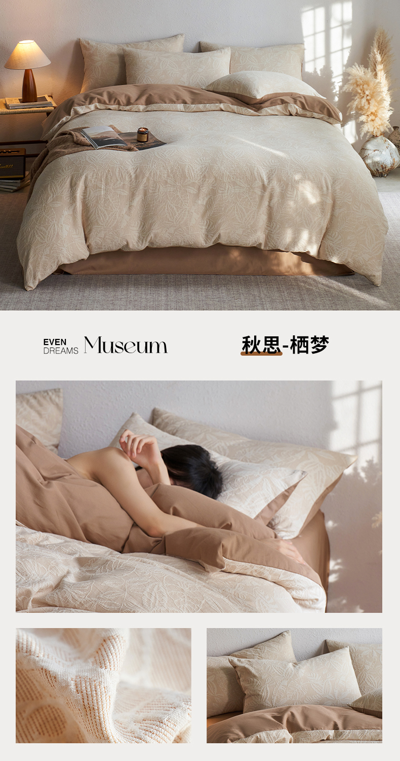 当前位置: 91家纺网 > 商品网购 > 床品套件 > 四件套 > 全棉普通四件套 > 千朵森 2025新款全棉纯棉色织提花磨毛四件套-秋思 秋思—叶影