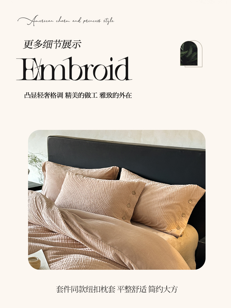 商品名称:(总)十方家居 2025年新款9斤加厚雕花绒牛奶绒剪花纽扣款工艺牛奶绒四件套(全网控价标准不低于168)