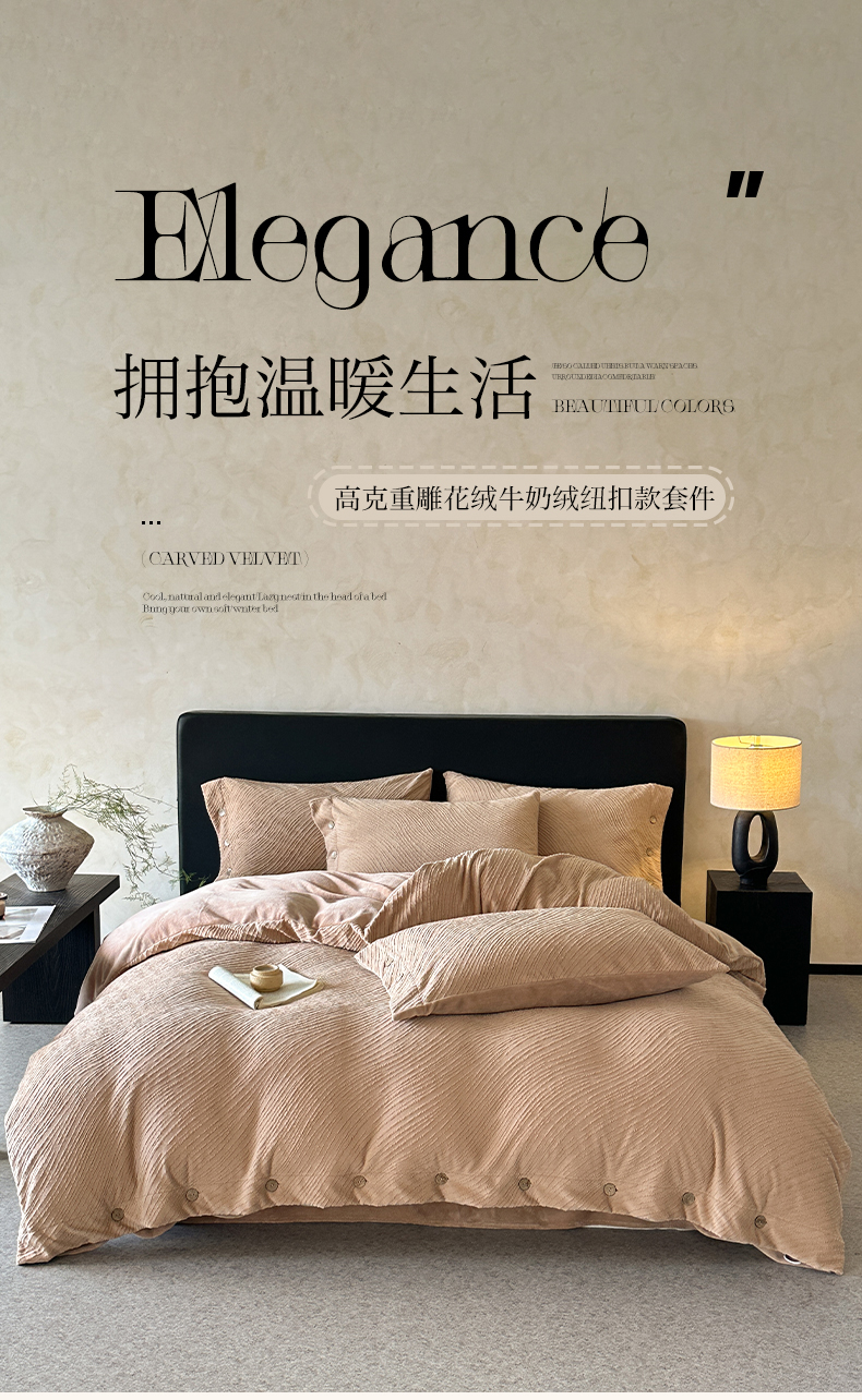 (总)十方家居 2025年新款9斤加厚雕花绒牛奶绒剪花纽扣款工艺牛奶绒四件套(全网控价标准不低于168)