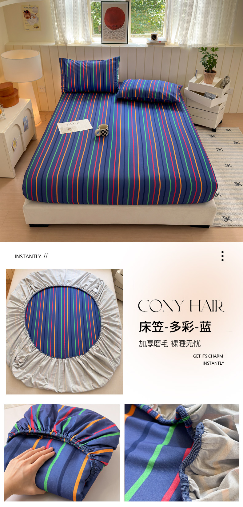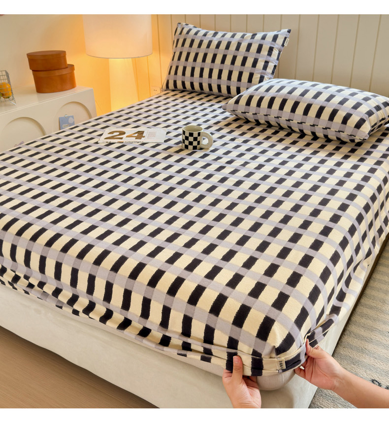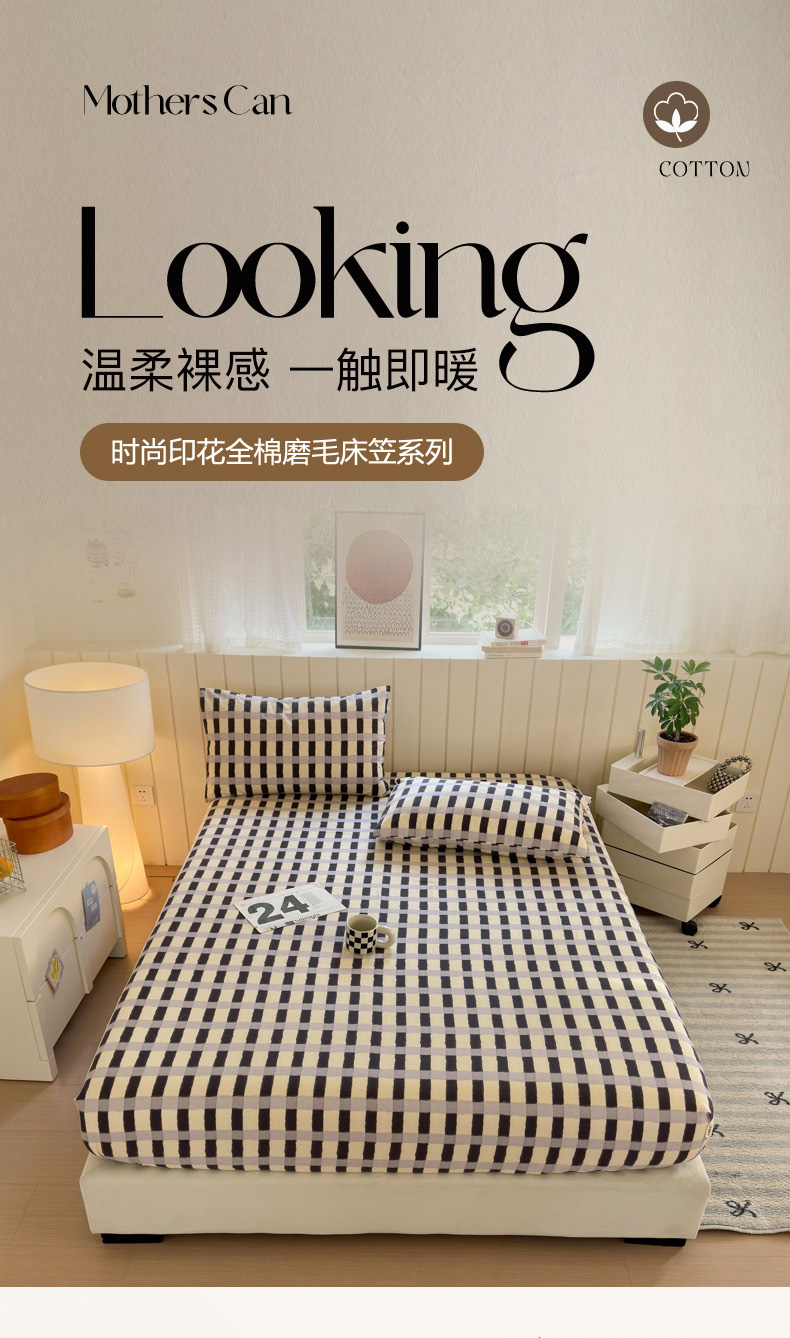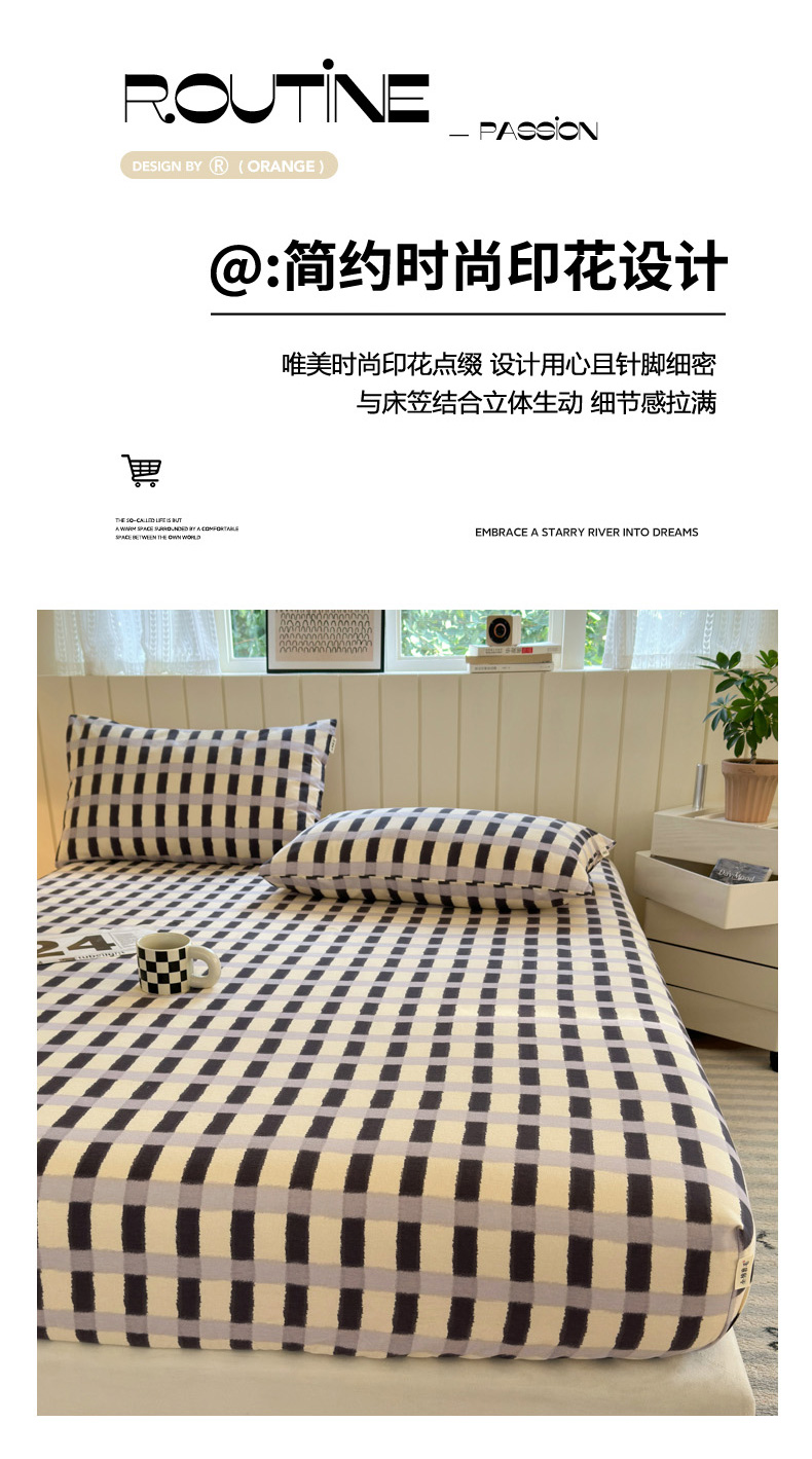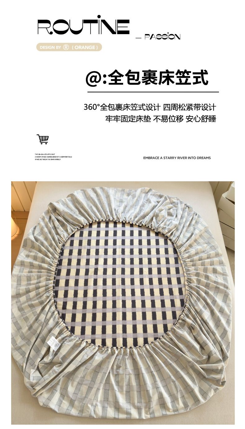 如意朵 2025新款时尚印花全棉加厚磨毛床笠 艾格-蓝灰