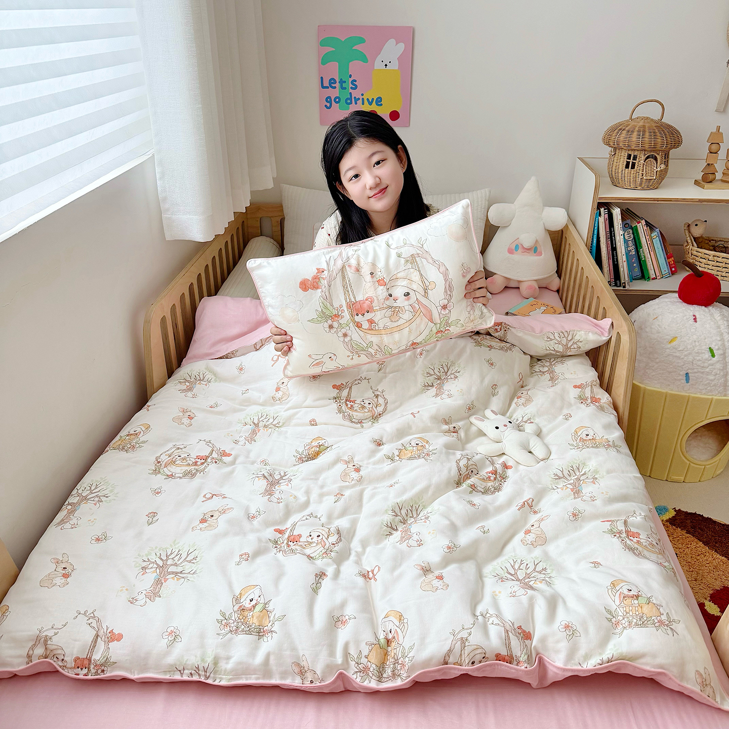 当前位置: 91家纺网 > 商品网购 > 床品套件 > 三件套 > 萌宝家纺 2025新款母婴A类全棉双层纱儿童被套纯棉纱布三件套 晚安熊