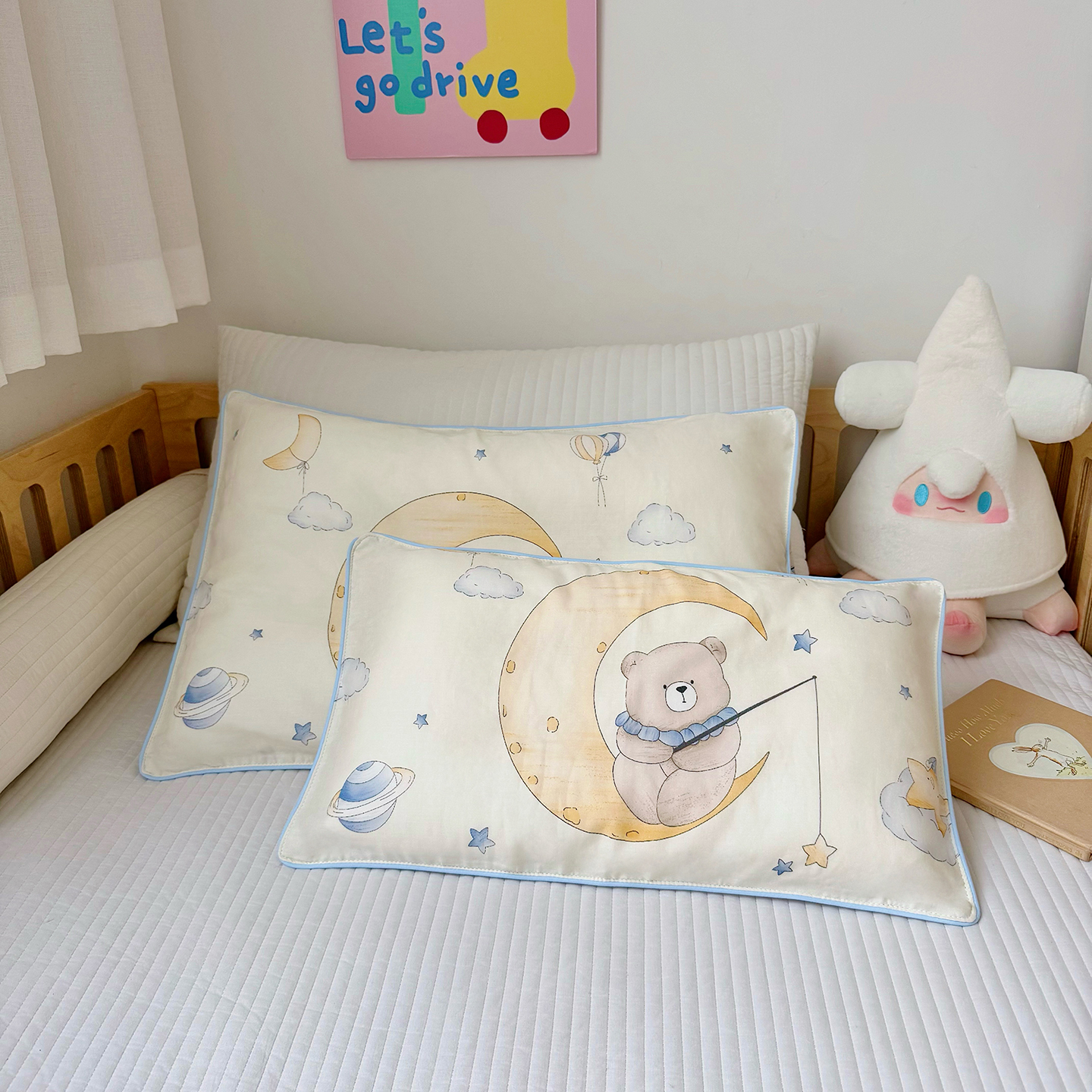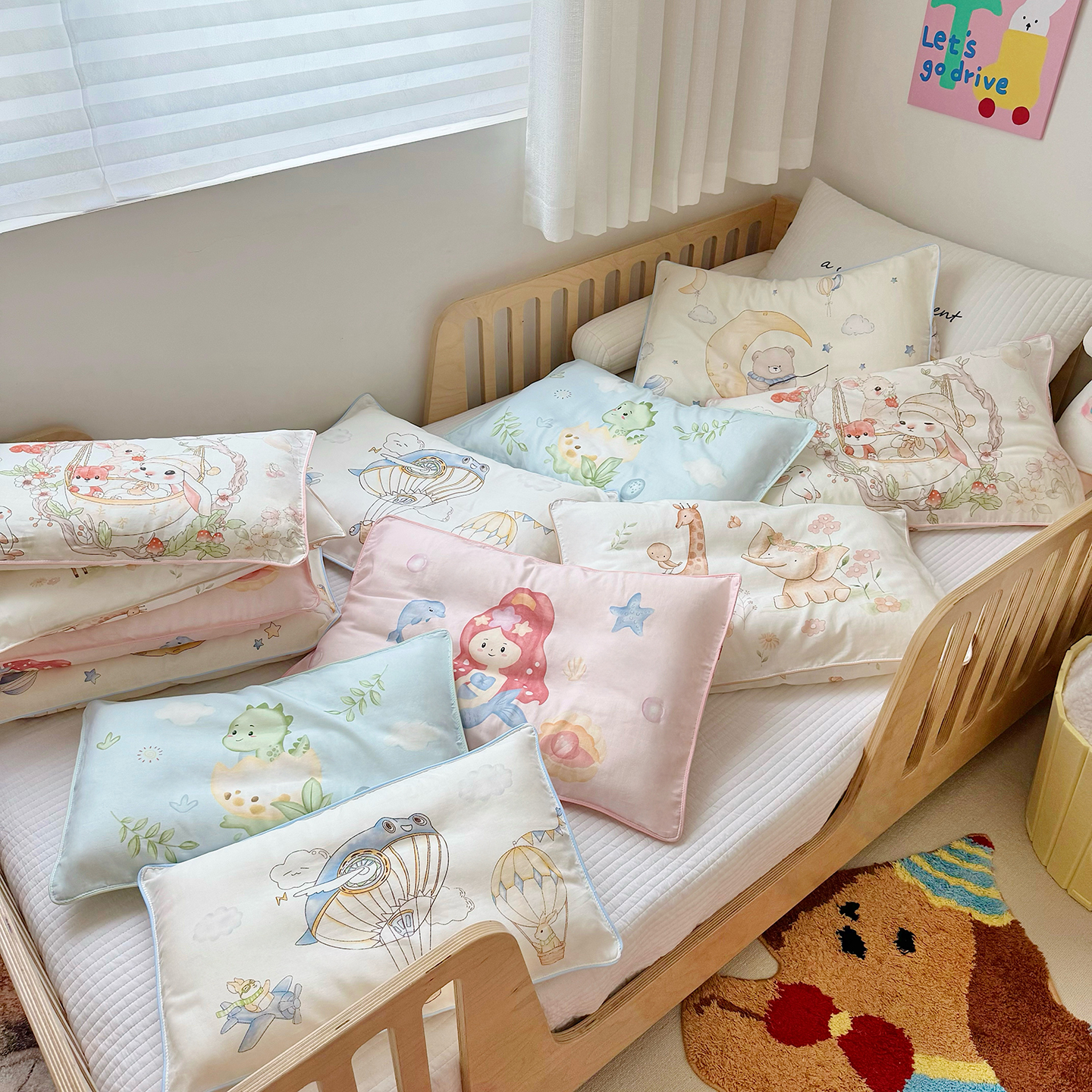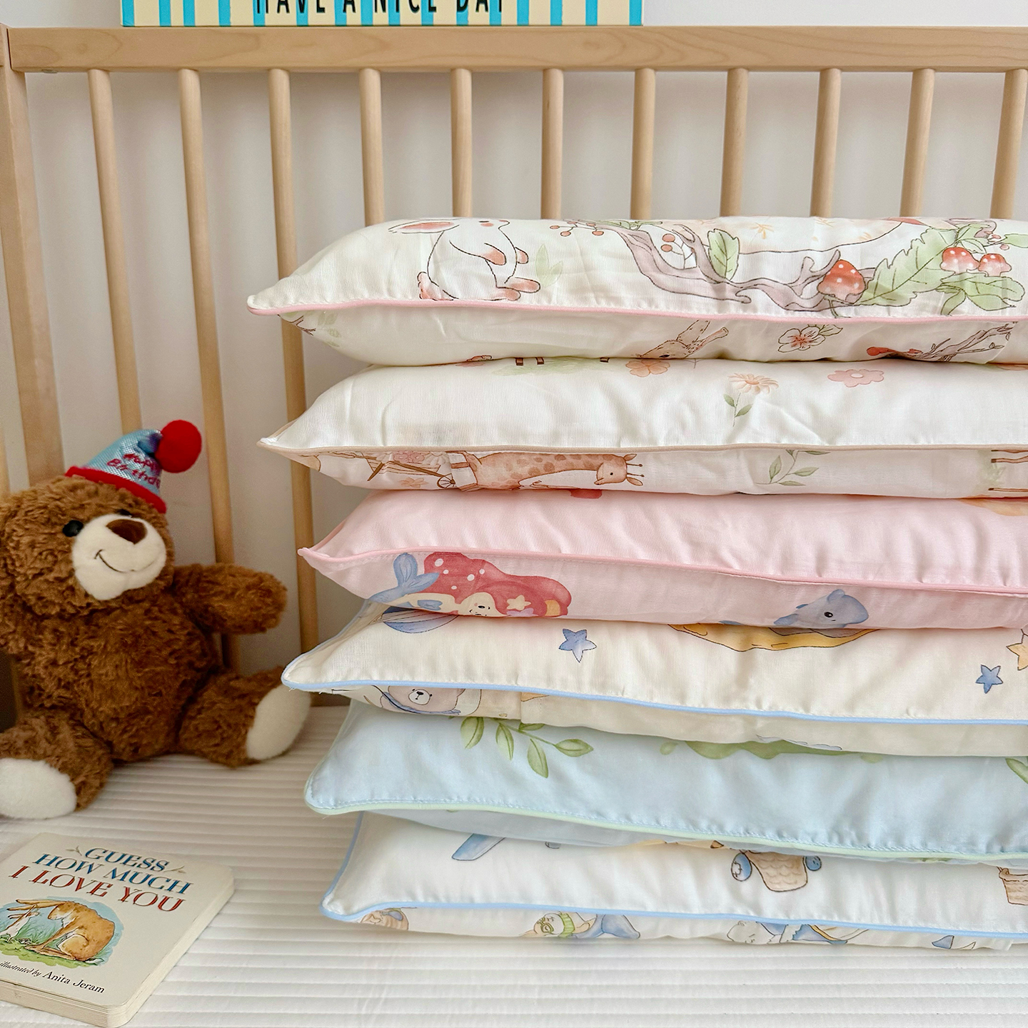 (总)萌宝家纺 2025新款A类大版全棉儿童双层纱枕套纯棉宝宝纱布枕头,动物园,美人鱼,热气球,晚安熊,小恐龙,摇篮兔