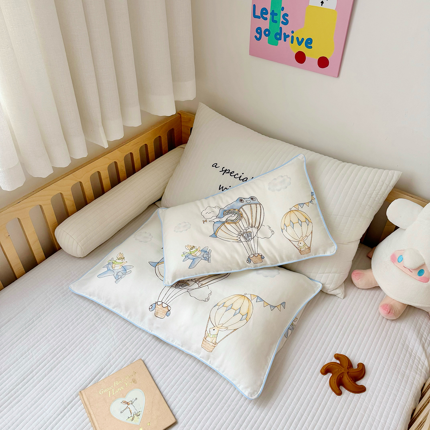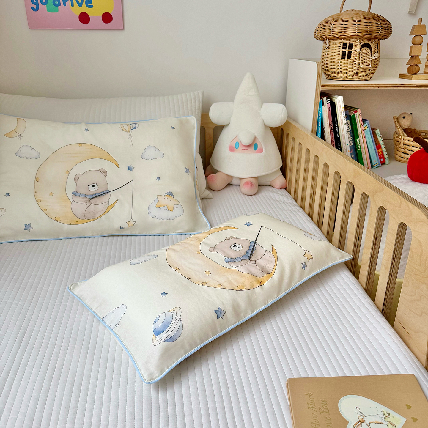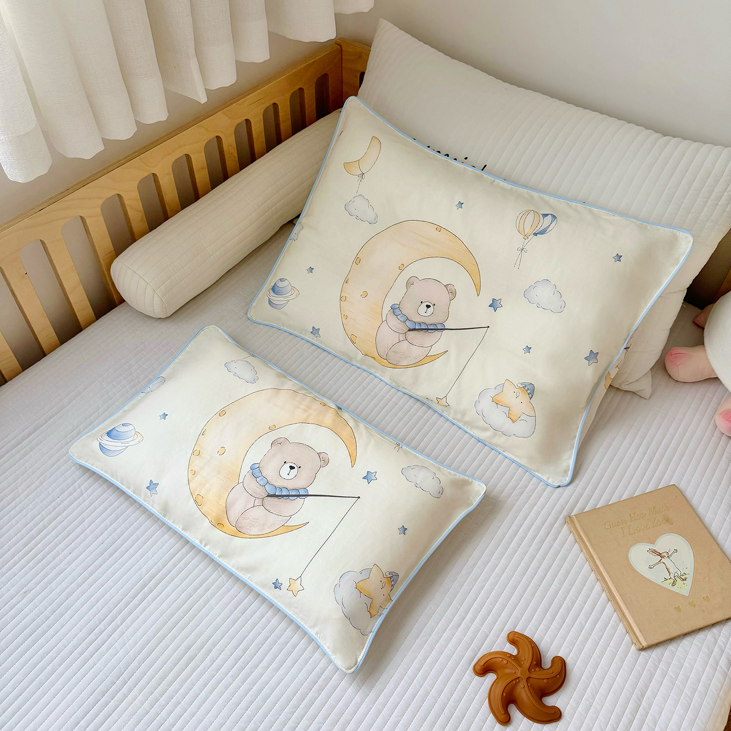 (总)萌宝家纺 2025新款A类大版全棉儿童双层纱枕套纯棉宝宝纱布枕头,动物园,美人鱼,热气球,晚安熊,小恐龙,摇篮兔