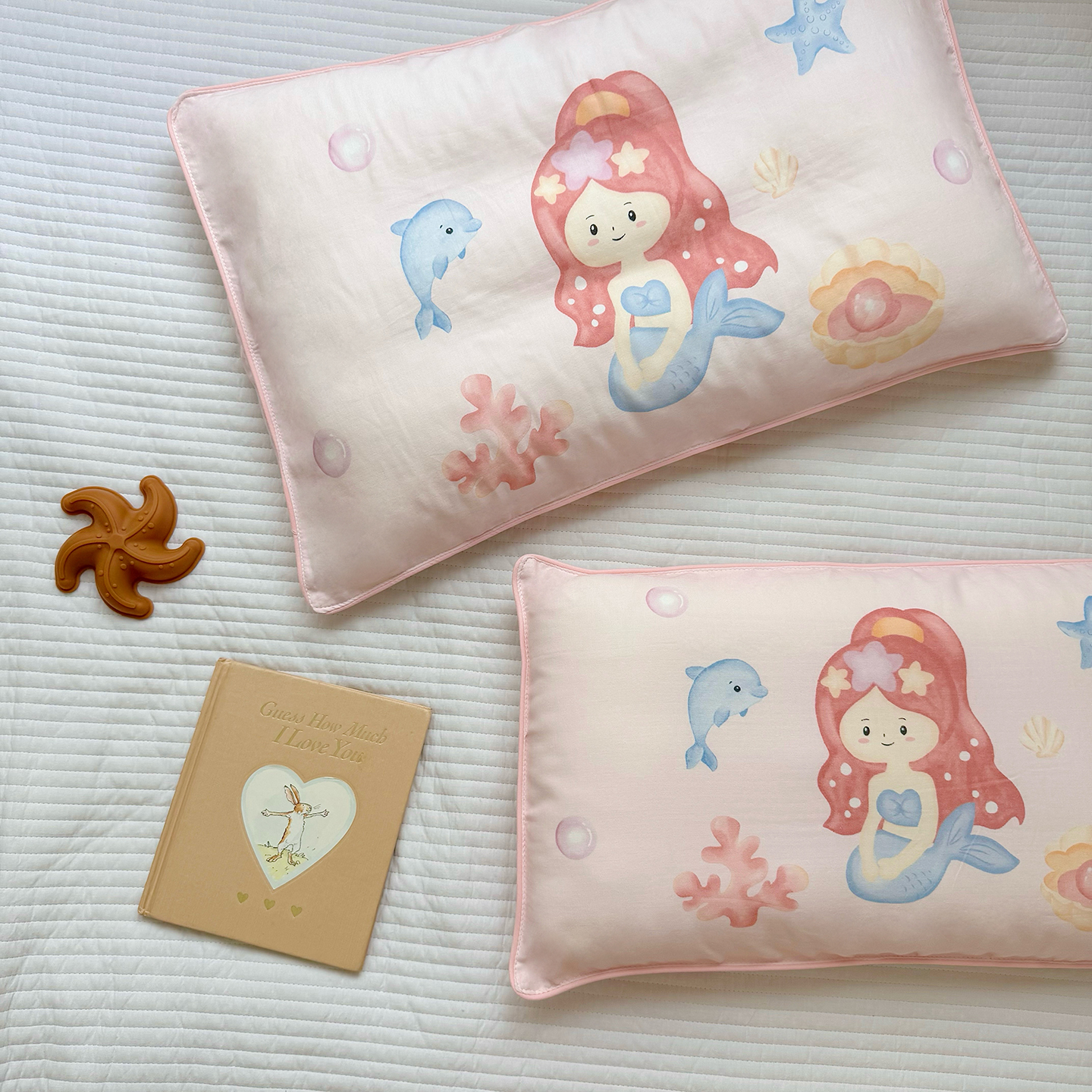 商品名称:萌宝家纺 2025新款A类大版全棉儿童双层纱枕套纯棉宝宝纱布枕头 美人鱼