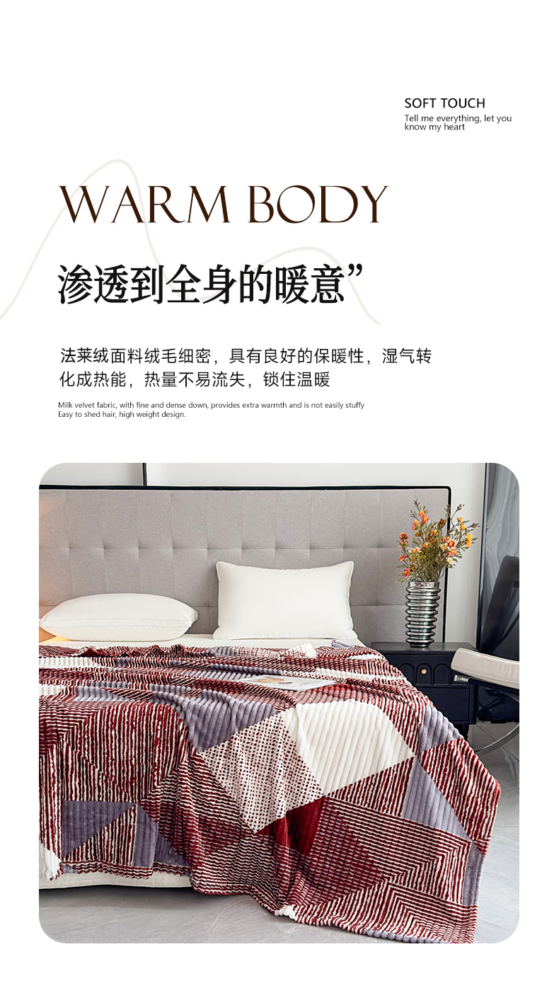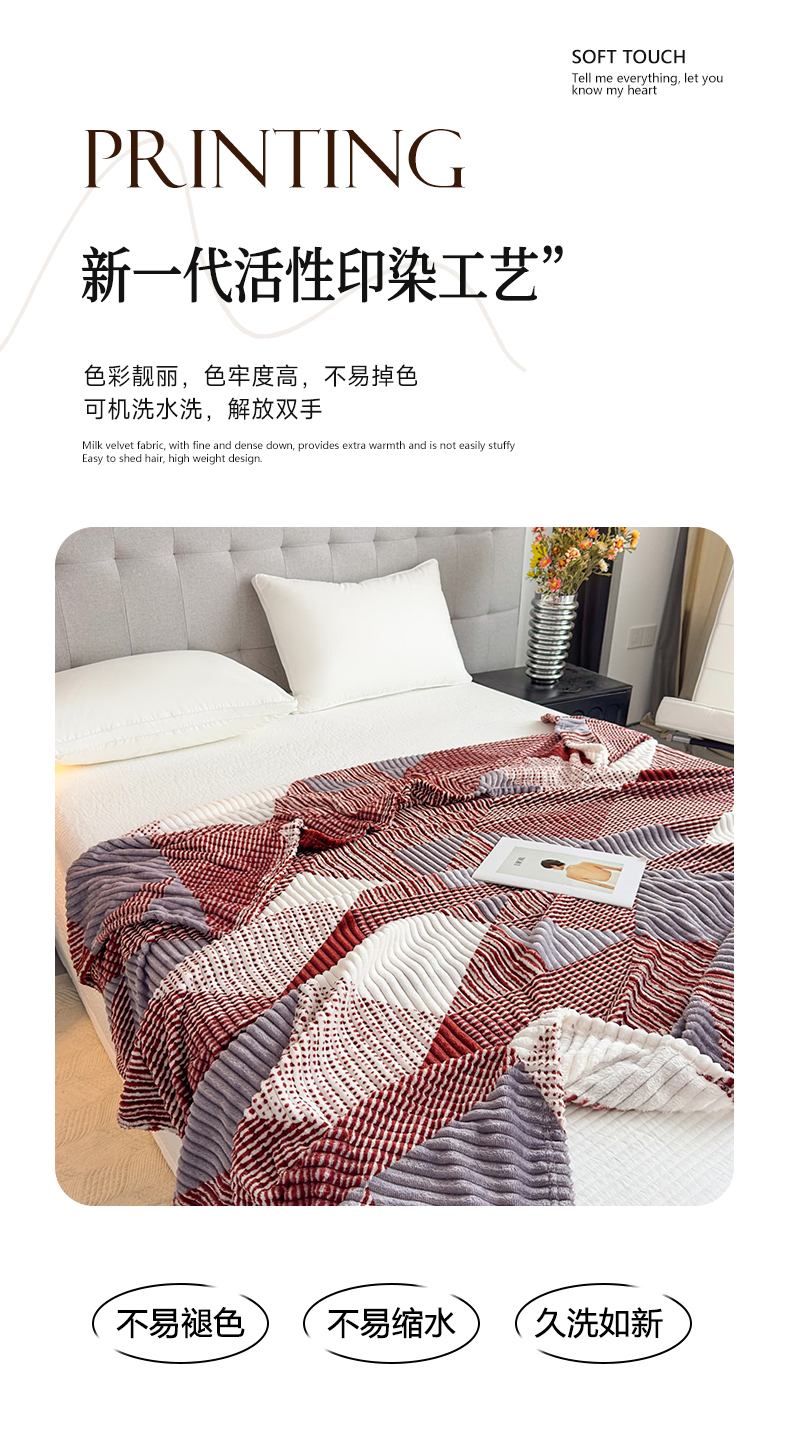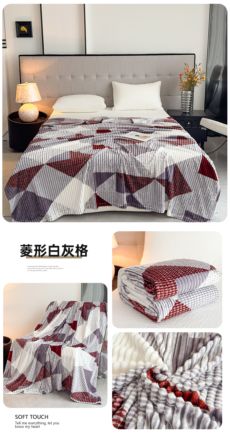 商品名称:璐维斯 2025新款菱形格抽条印花毛毯跨境外贸专供 菱形咖格