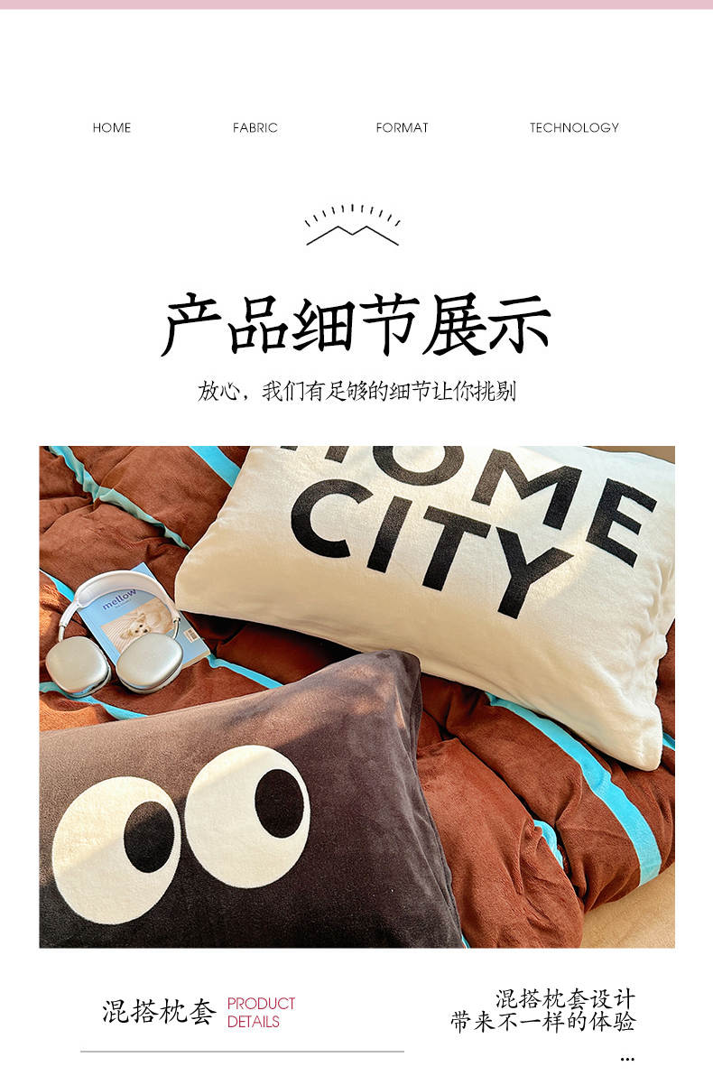 (总)蜜宿 2024新款美拉德大眼睛全棉水洗棉四件套,大眼睛-咖巧克力棕