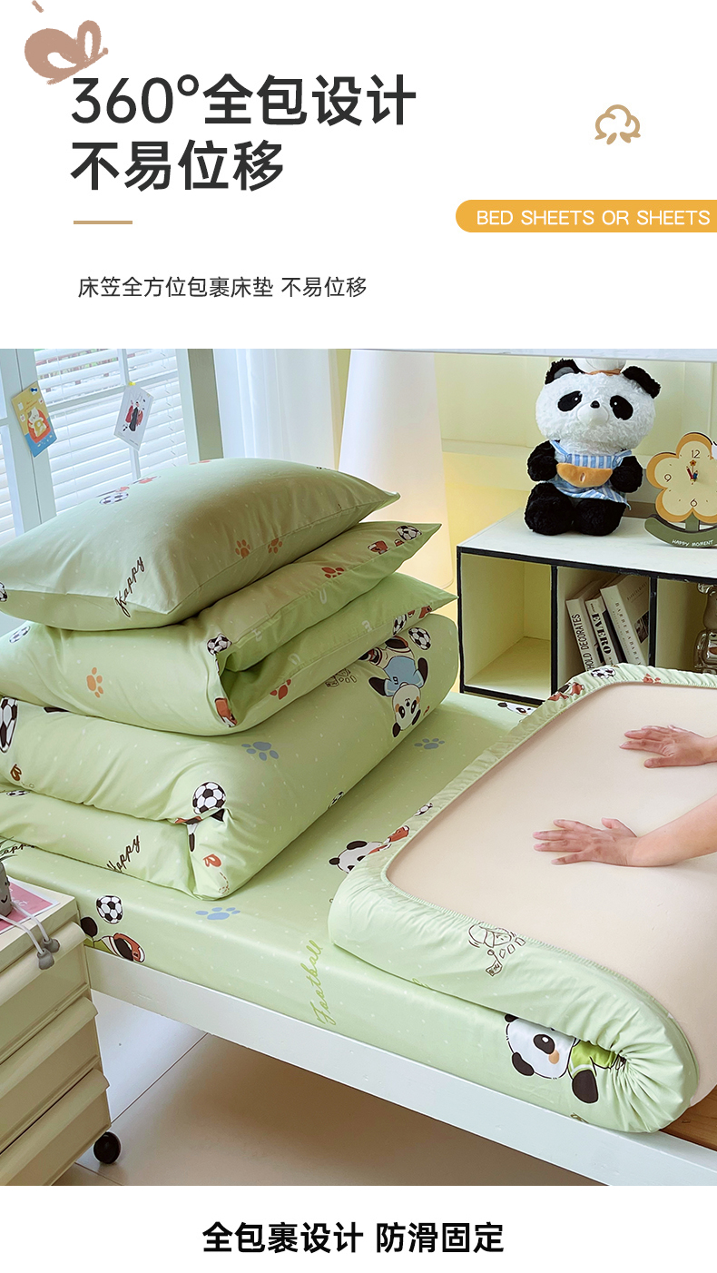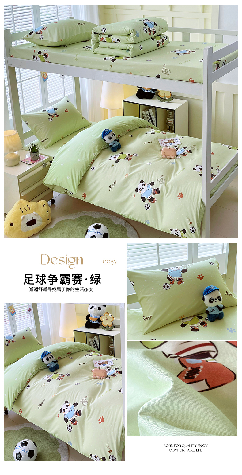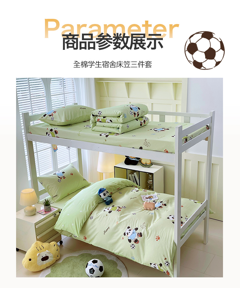 当前位置: 91家纺网 > 商品网购 > 床品套件 > 三件套 > 金鑫汇家纺 2025新款A类全棉纯棉印花学生床宿舍上下铺三件套 足球争霸赛·绿